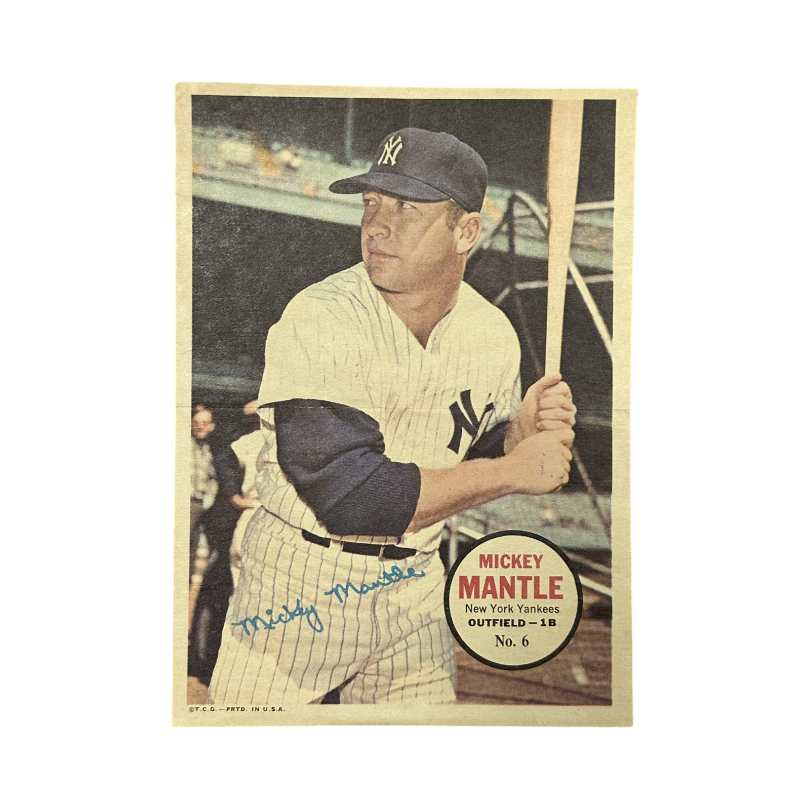 1967 Mickey Mantle New York Yankees Topps Pin Up #6 Poster