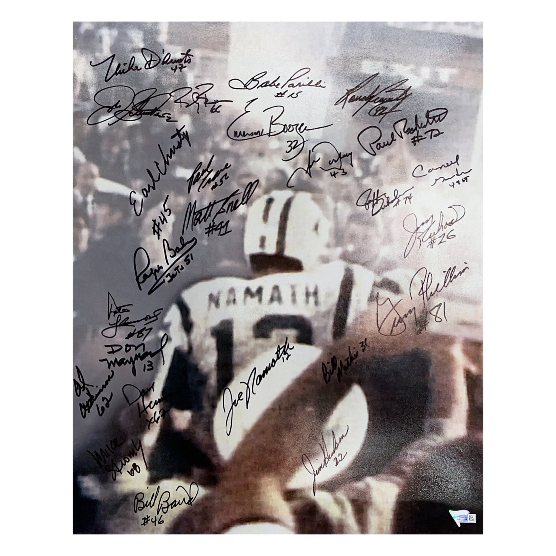 1969 New York Jets Autographed Super Bowl Namath Leaving Field 16x20 25 Autographs Including Namath, Maynard, Boozer & More Fanatics