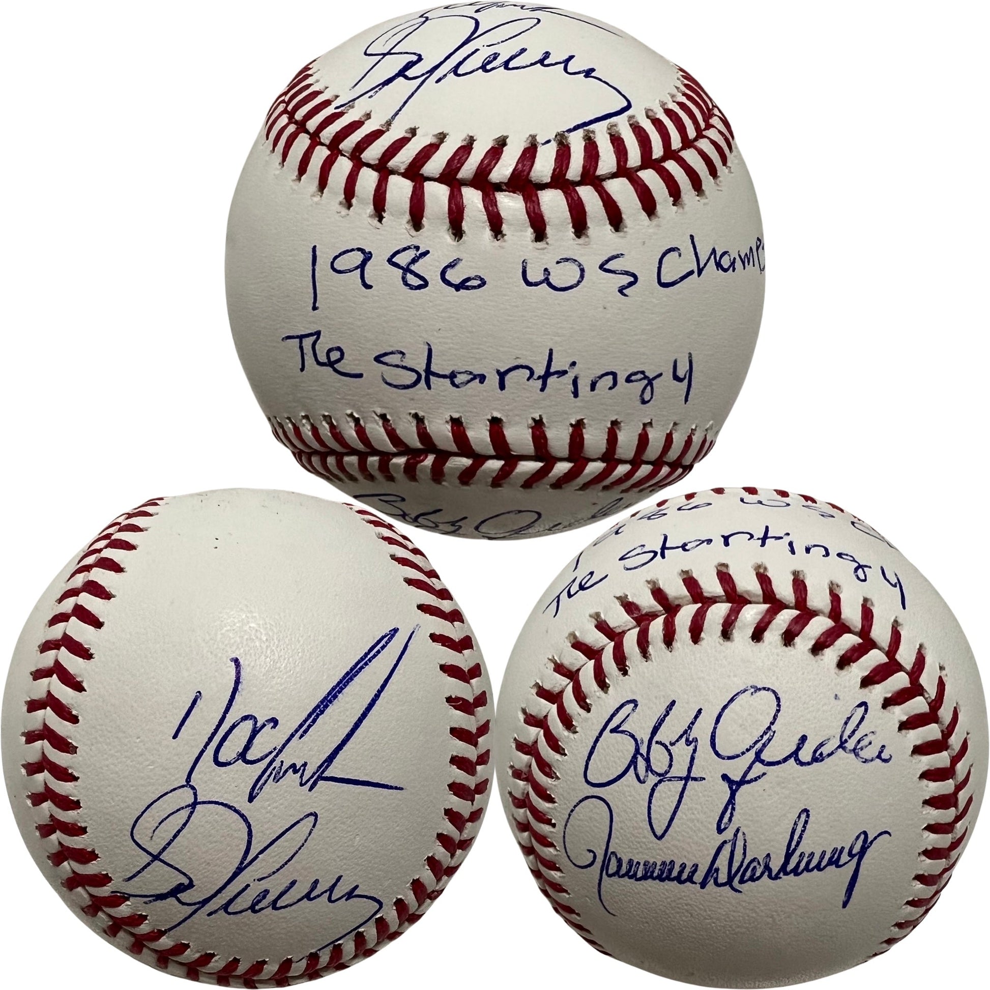 1986 Mets Starting Four Doc Gooden, Bobby Ojeda, Ron Darling & Sid Fernandez Autographed New York Mets OMLB 1986 WS Champs, The Starting 4 Inscriptions JSA