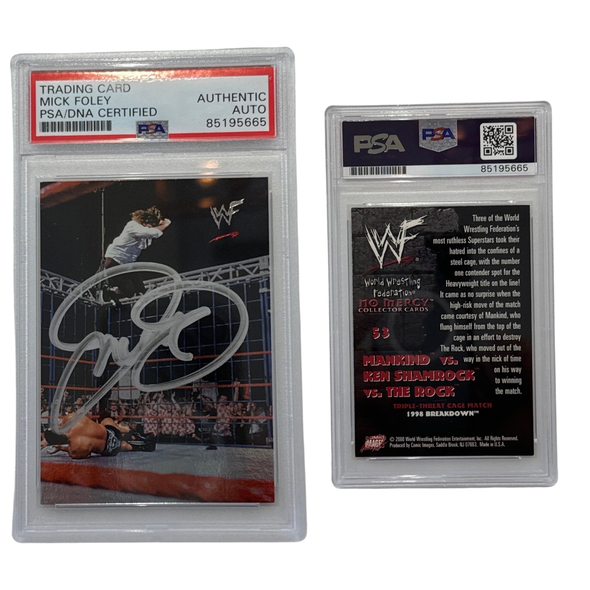2000 Mankind VS Ken Shamrock VS The Rock Mick Foley WWF #53 PSA Authentic Auto