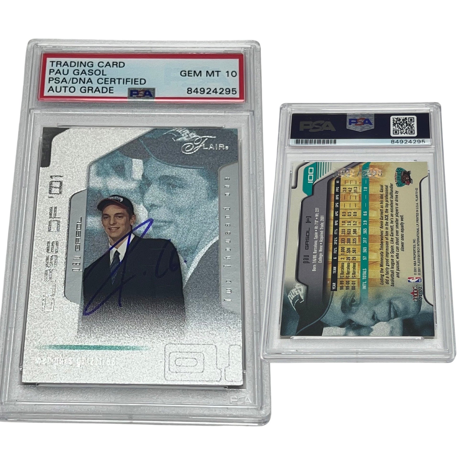 2001-02 Pau Gasol Flair Rookie Card /1500 #100 Autographed PSA Auto GEM MINT 10