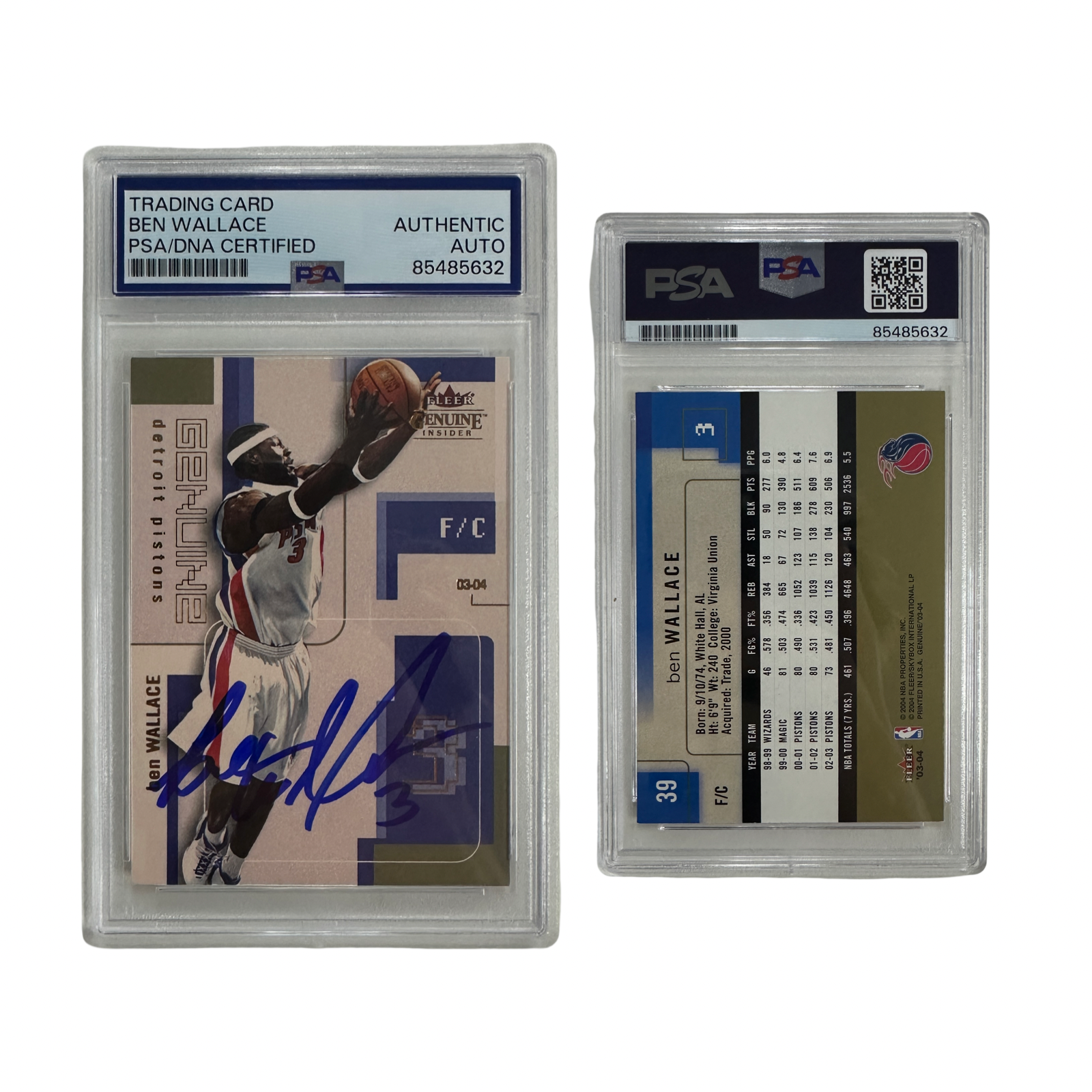 2003-04 Ben Wallace Autographed Fleer Genuine Insider #39 PSA Auto Authentic