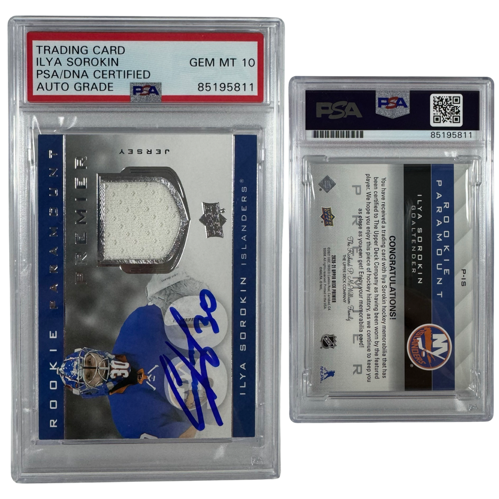 2020-21 Ilya Sorokin Autographed Upper Deck Rookie Paramount Premier Jersey Patch Relic #P-IS PSA Auto GEM MT 10