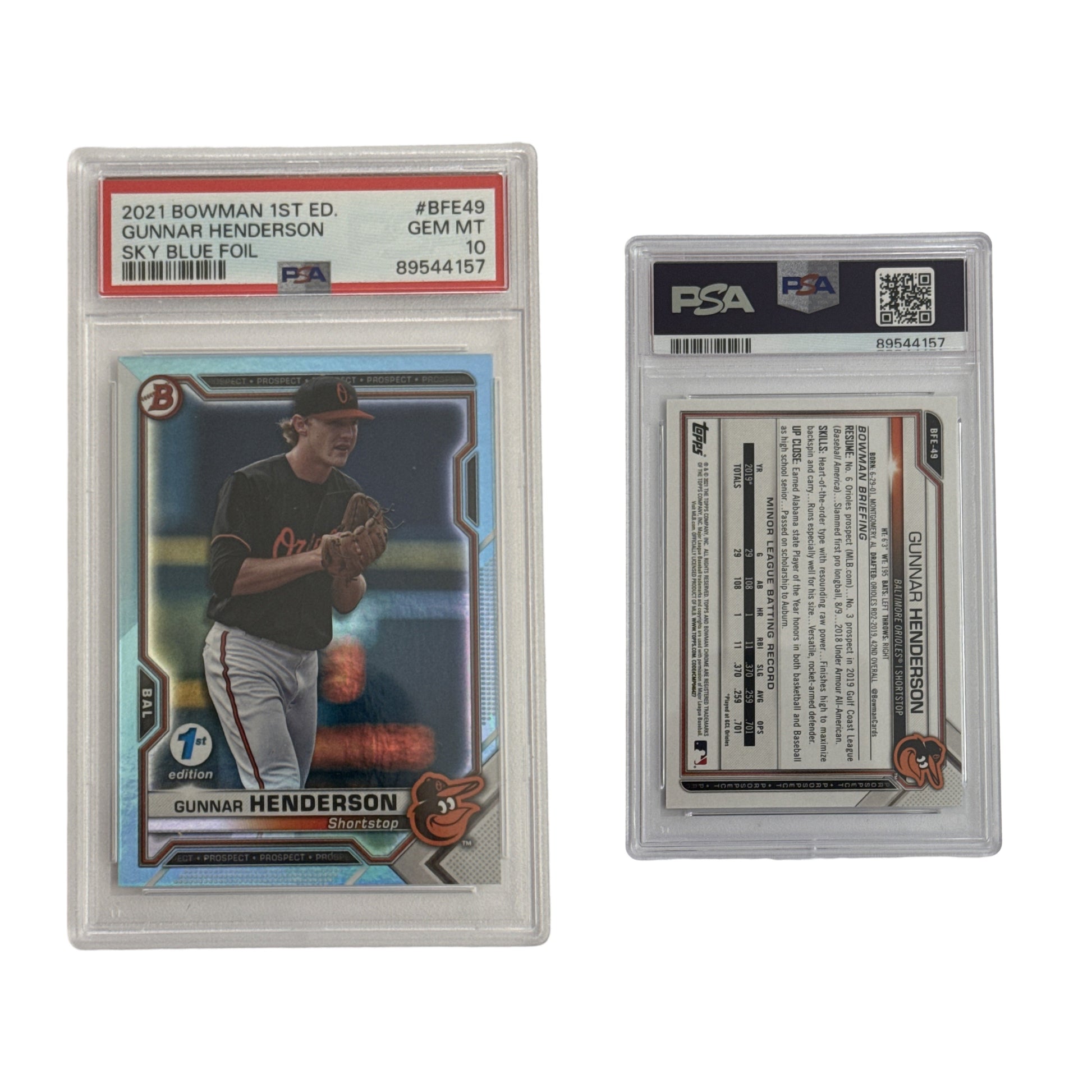 2021 Gunnar Henderson Bowman 1st Edition Sky Blue Foil #BFE49 PSA GEM MT 10