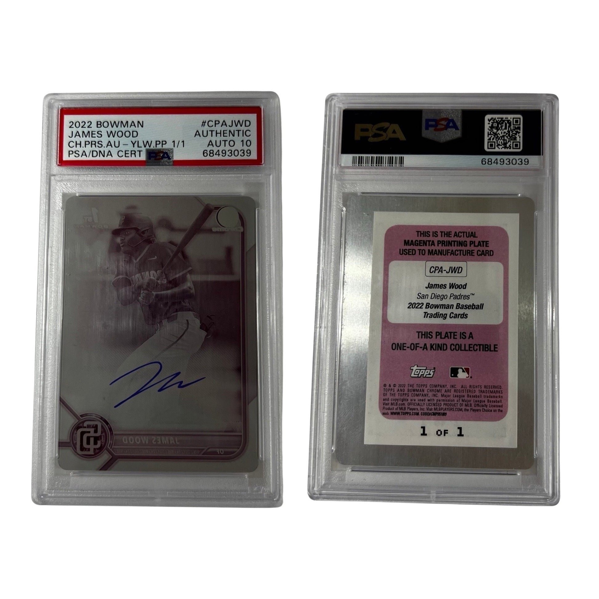 2022 Bowman James Wood #CPAJWD Printing Plate 1/1 PSA Auto 10