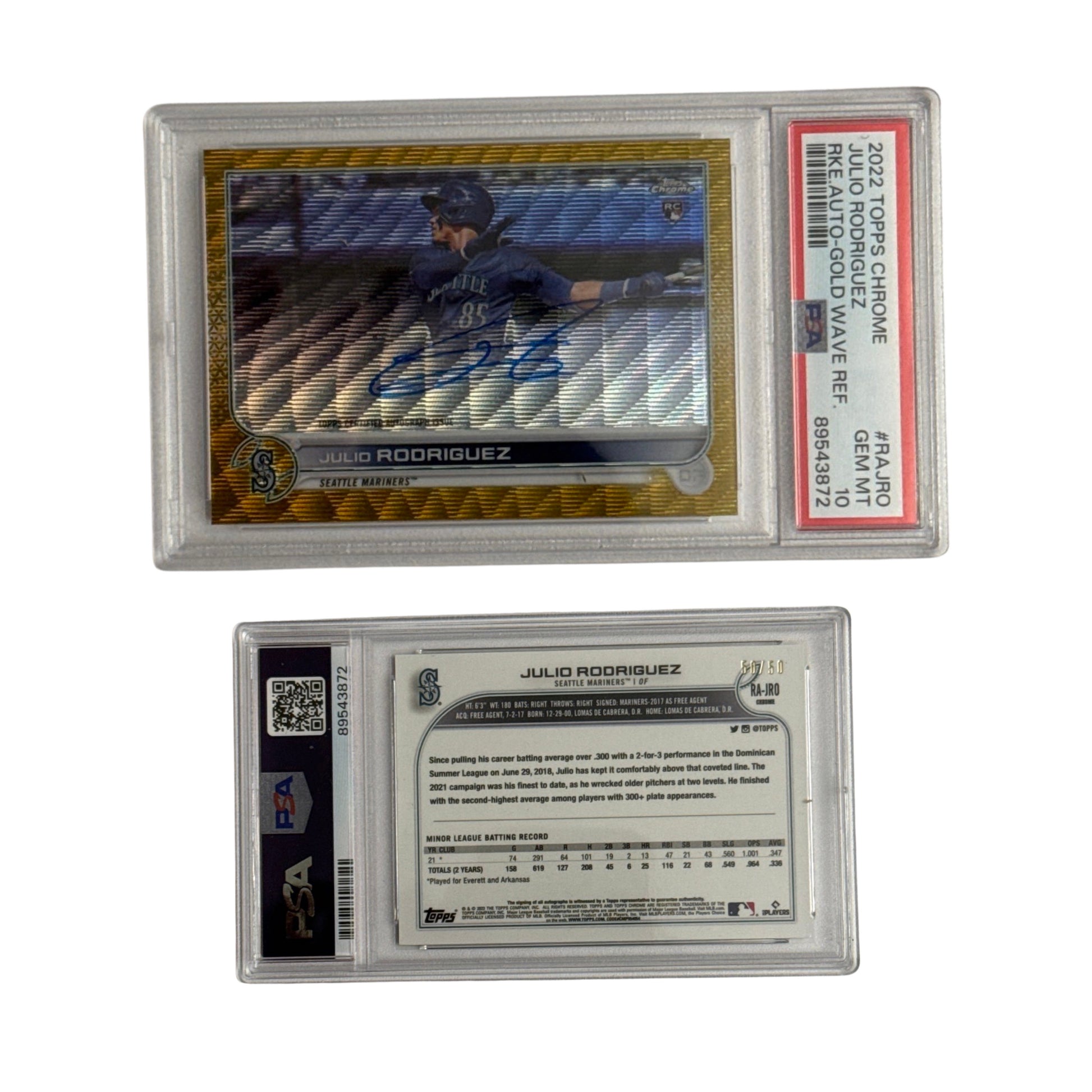 2022 Julio Rodriguez Topps Chrome Rookie Autograph Gold Wave Refractor /50 #RAJROPSA GEM MT 10