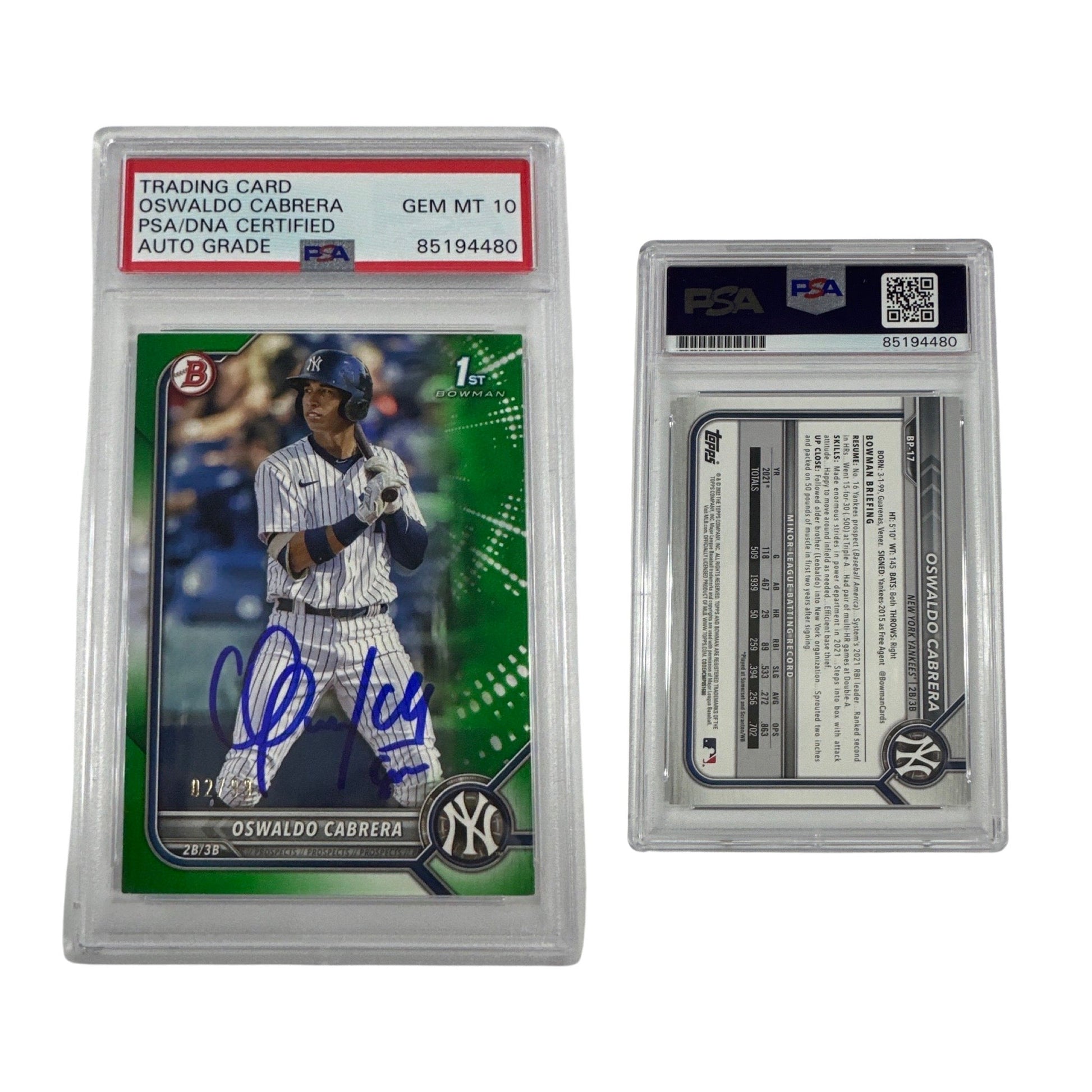 2022 Oswaldo Cabrera Bowman 1st Auto Green /99 #BP-17 PSA GEM MT 10