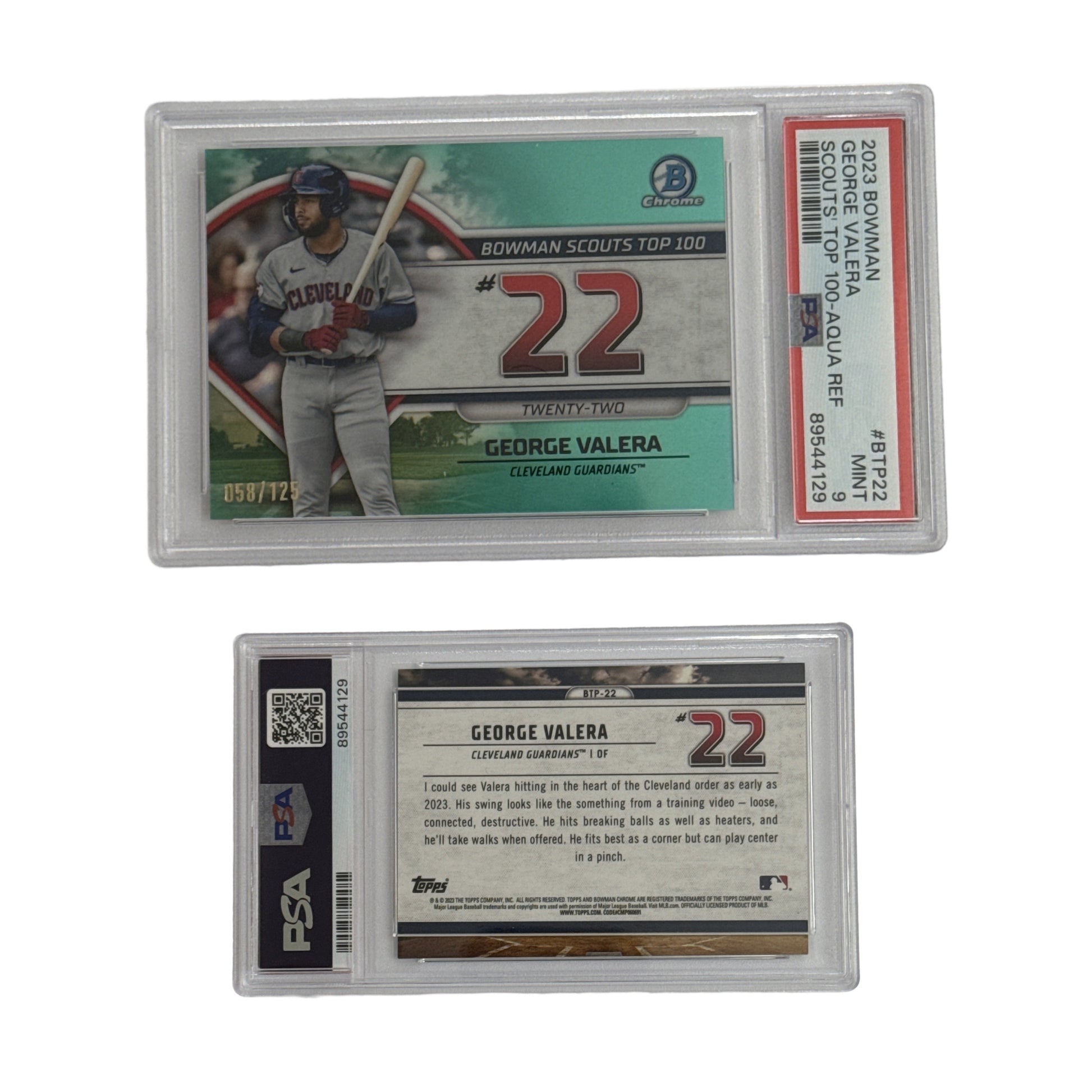 2023 George Valera Bowman Scouts Top 100 Aqua Refractor /125 #BTP22 PSA MINT 9