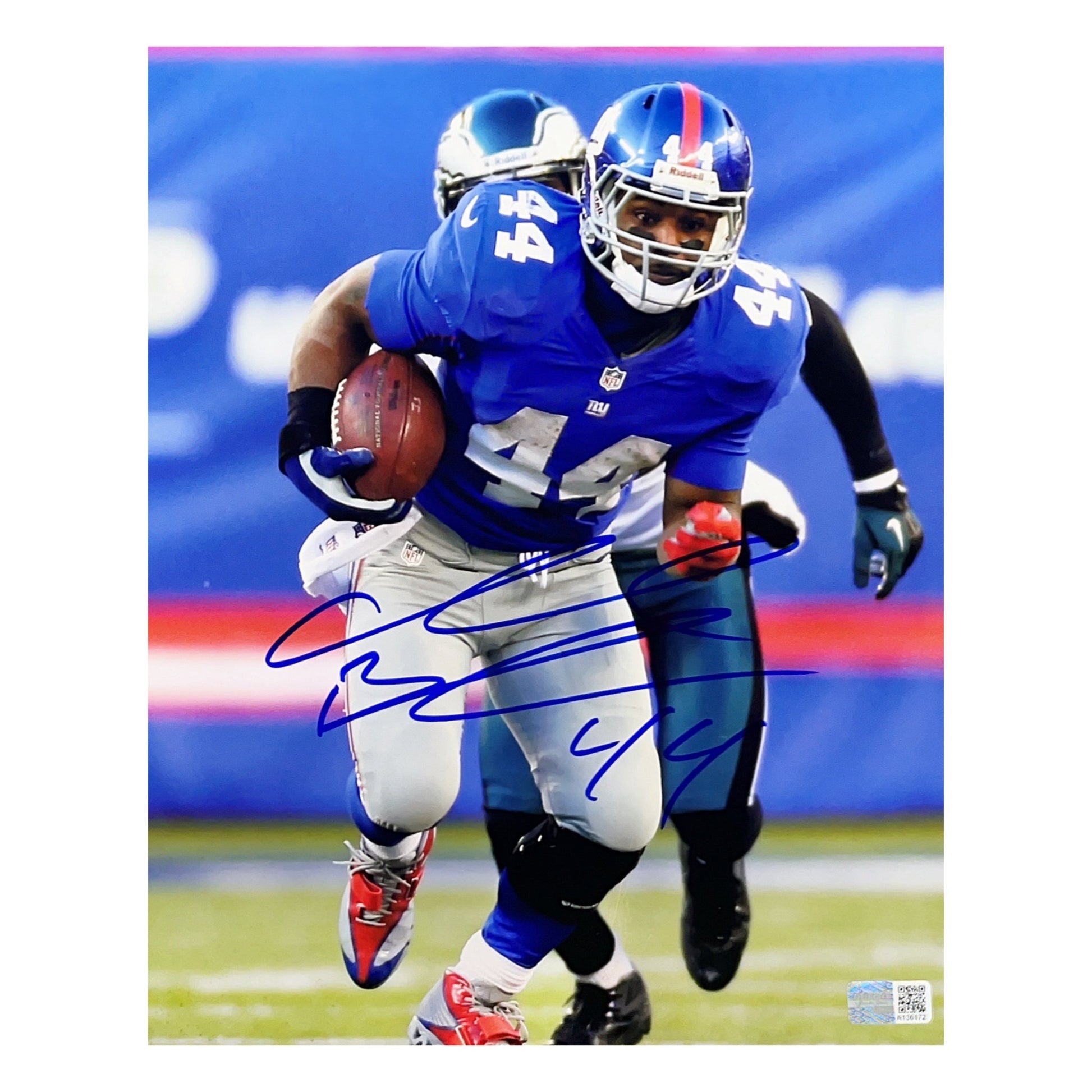 Ahmad Bradshaw Autographed New York Giants Past Eagles Defender 8x10 Steiner CX