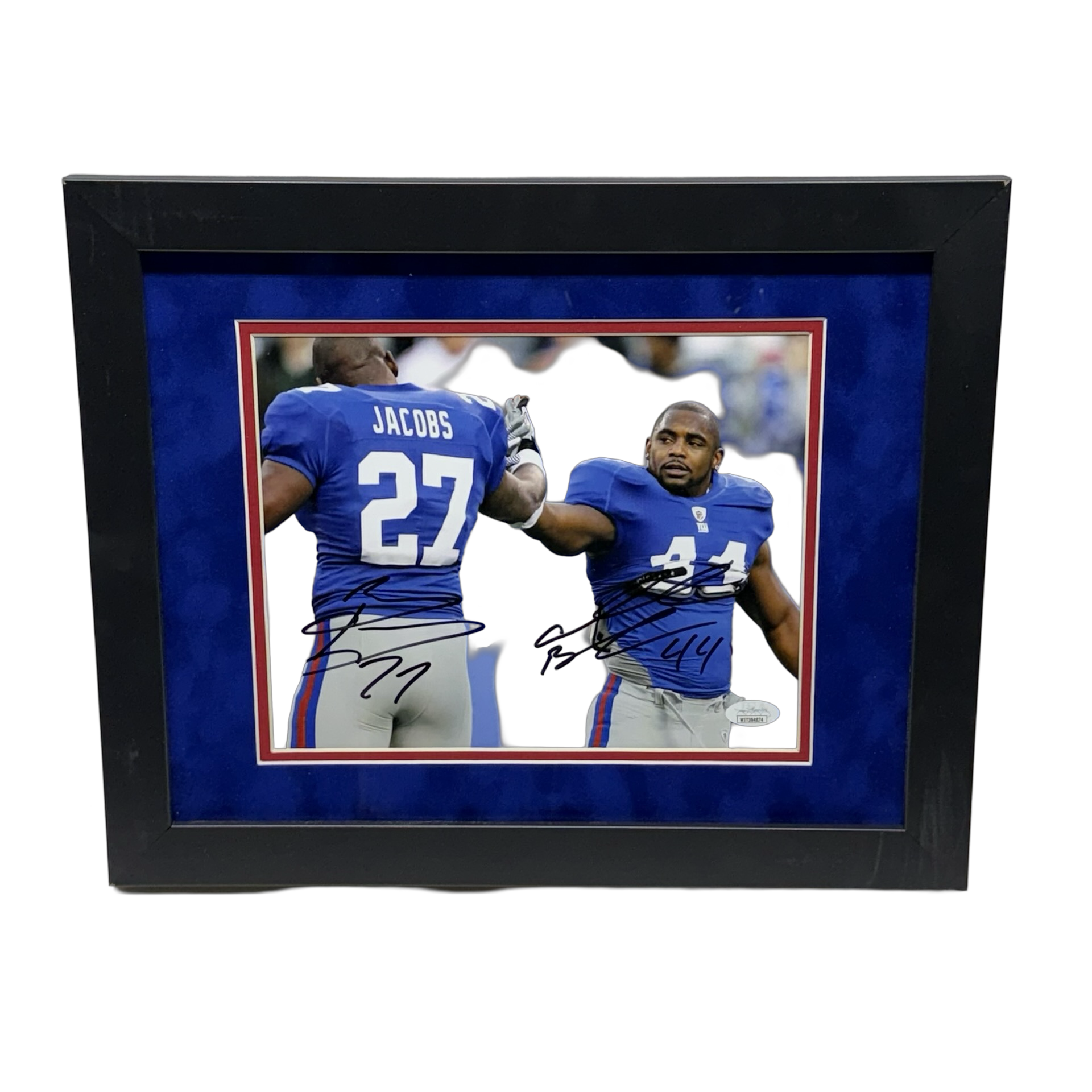 Ahmad Bradshaw & Brandon Jacobs Autographed High Five 8x10 JSA - Framed