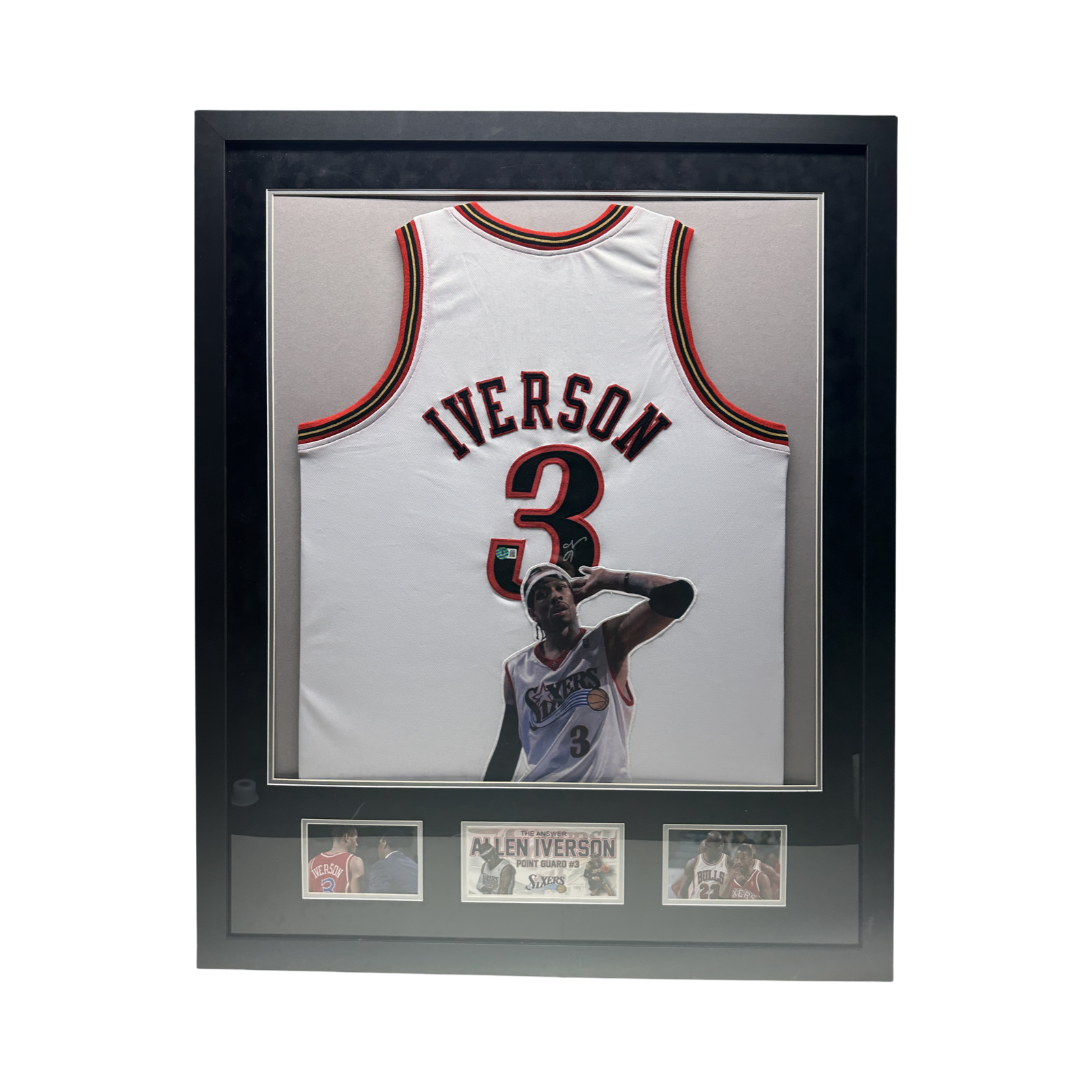 Allen Iverson Autographed Philadelphia 76’ers White Art Jersey Beckett - Black Suede Elite Framed