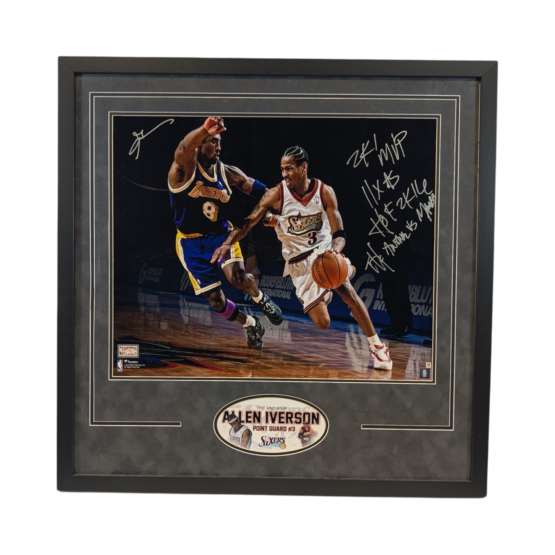 Allen Iverson Autographed Philadelphia 76ers W/ Kobe Framed 20x24 "2K1 MVP, 11X AS, HOF 2K16 & The Answer vs. Mamba" Inscriptions Steiner CX
