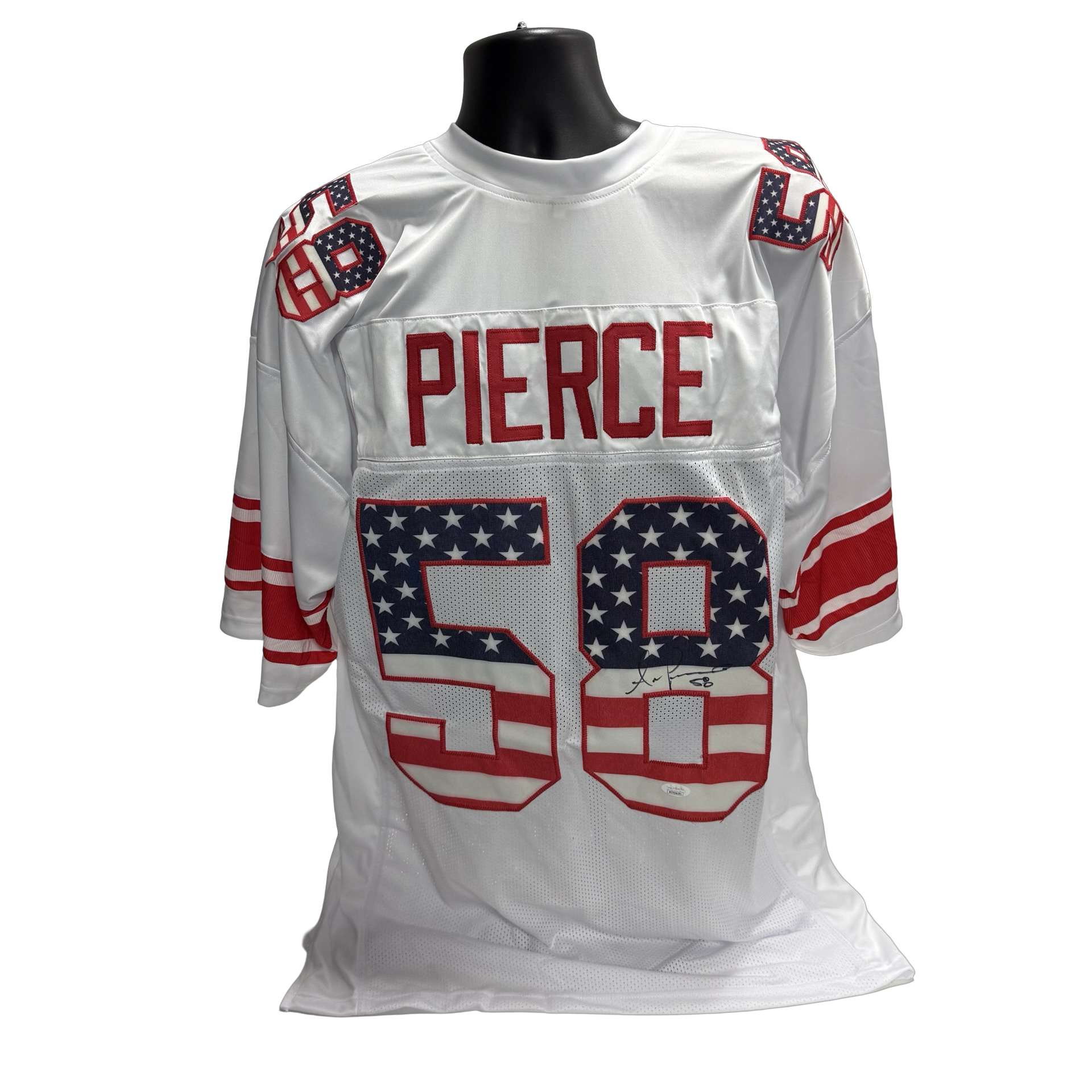 Antonio Pierce Autographed New York Giants Stars & Stripes Numbers White Jersey JSA