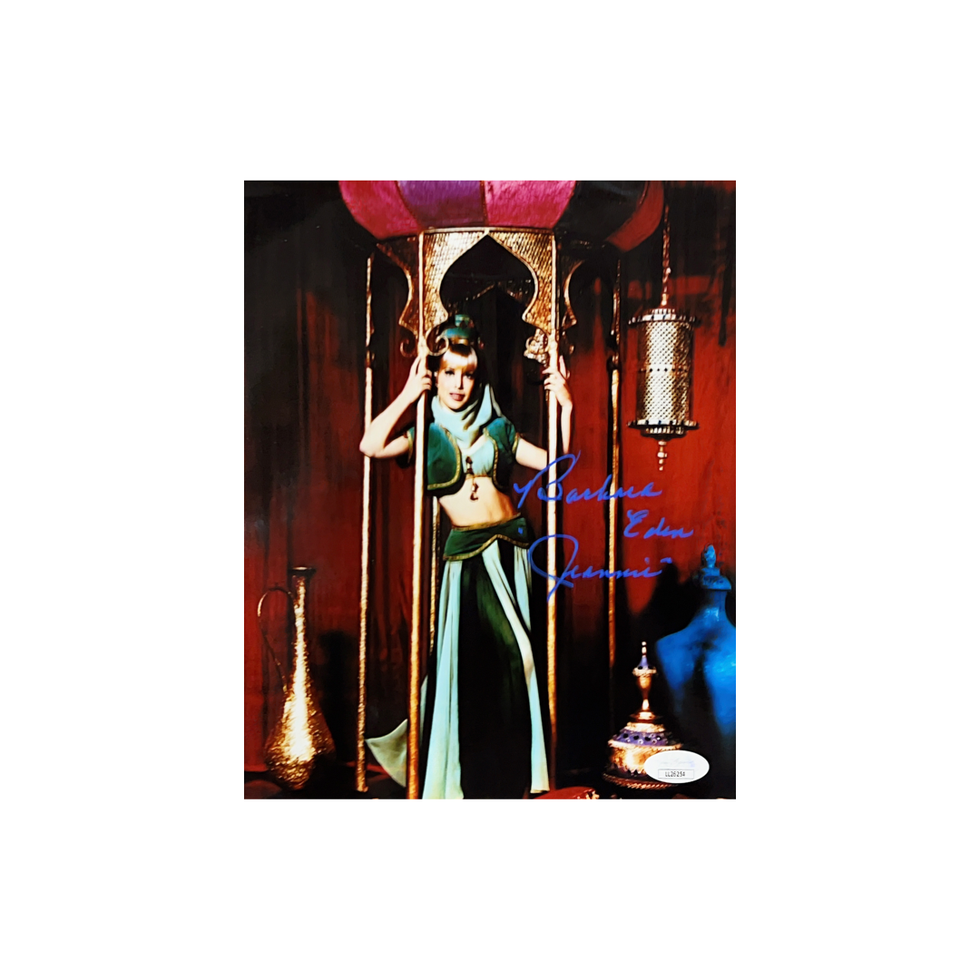 Barbara Eden Autographed I Dream Of Jeannie Green Dress 8x10 "Jeannie" Inscription JSA