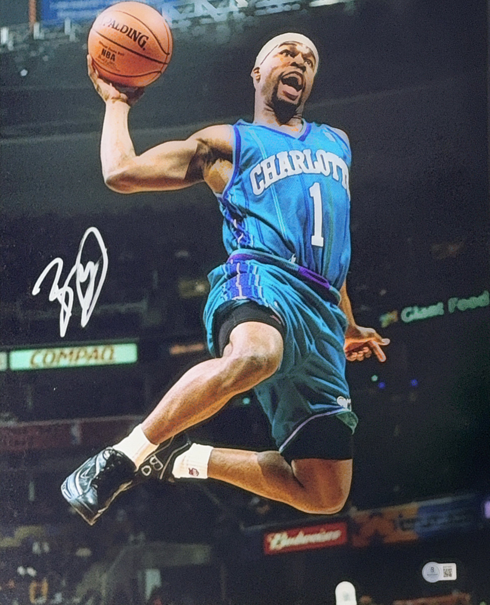 Baron Davis Autographed Charlotte Hornets Dunk 16x20 Beckett