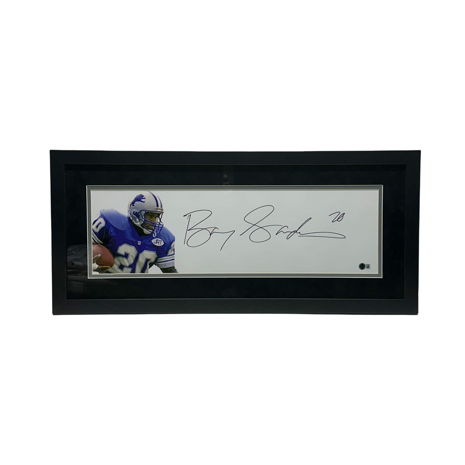 Barry Sanders Autographed Detroit Lions Signed Framed Black Mat 8x26 Photo Beckett BAS