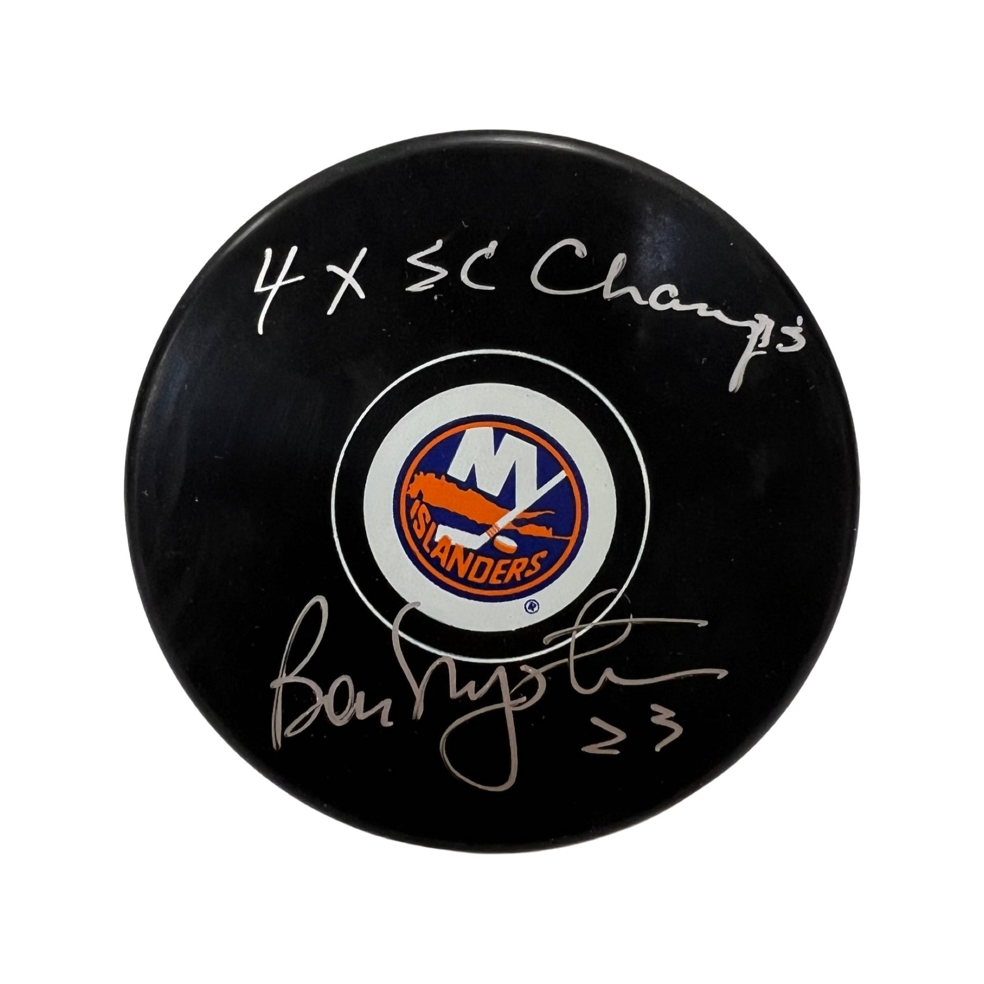Bob Nystrom Autographed New York Islanders Replica Puck 4x SC Champs Inscription Steiner CX