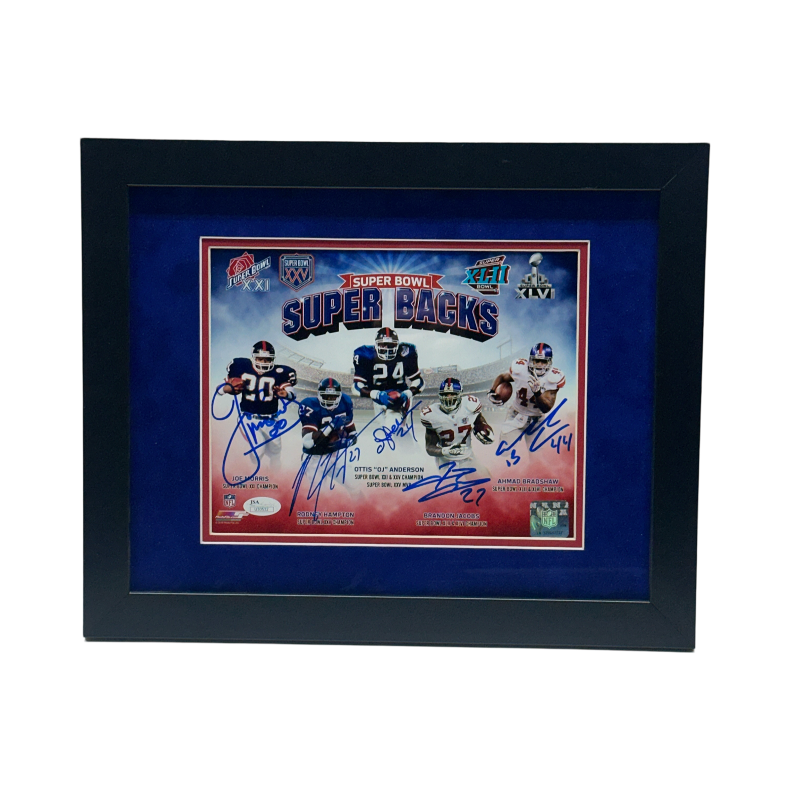 Brandon Jacobs, Ahmad Bradshaw, OJ Anderson, Joe Morris & Rodney Hampton Autographed New York Giants Superbacks 8x10 JSA - Framed