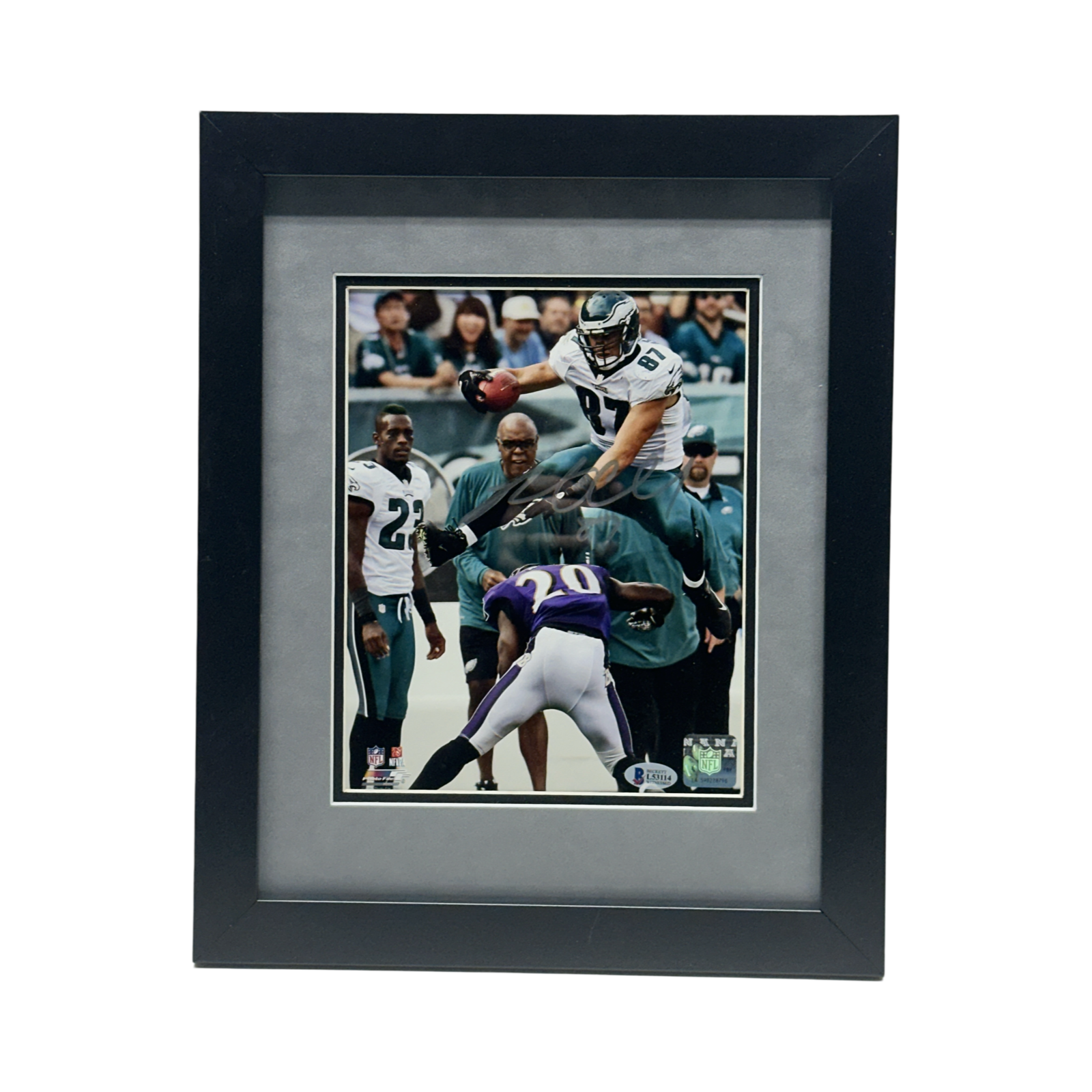 Brent Celek Autographed Philadelphia Eagles Vertical Hurdle 8x10 Beckett - Framed