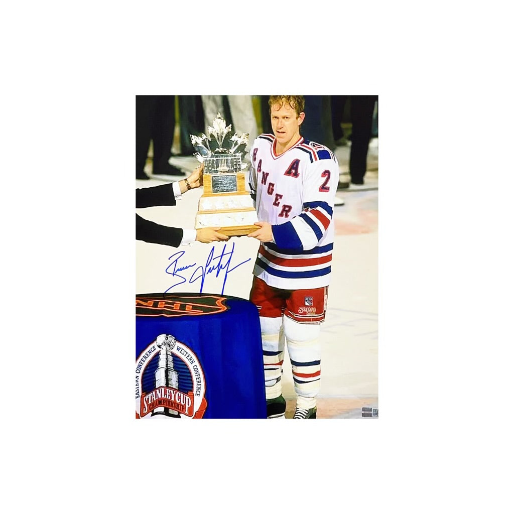 Brian Leetch Autographed New York Rangers Calder Trophy 11x14 Steiner CX