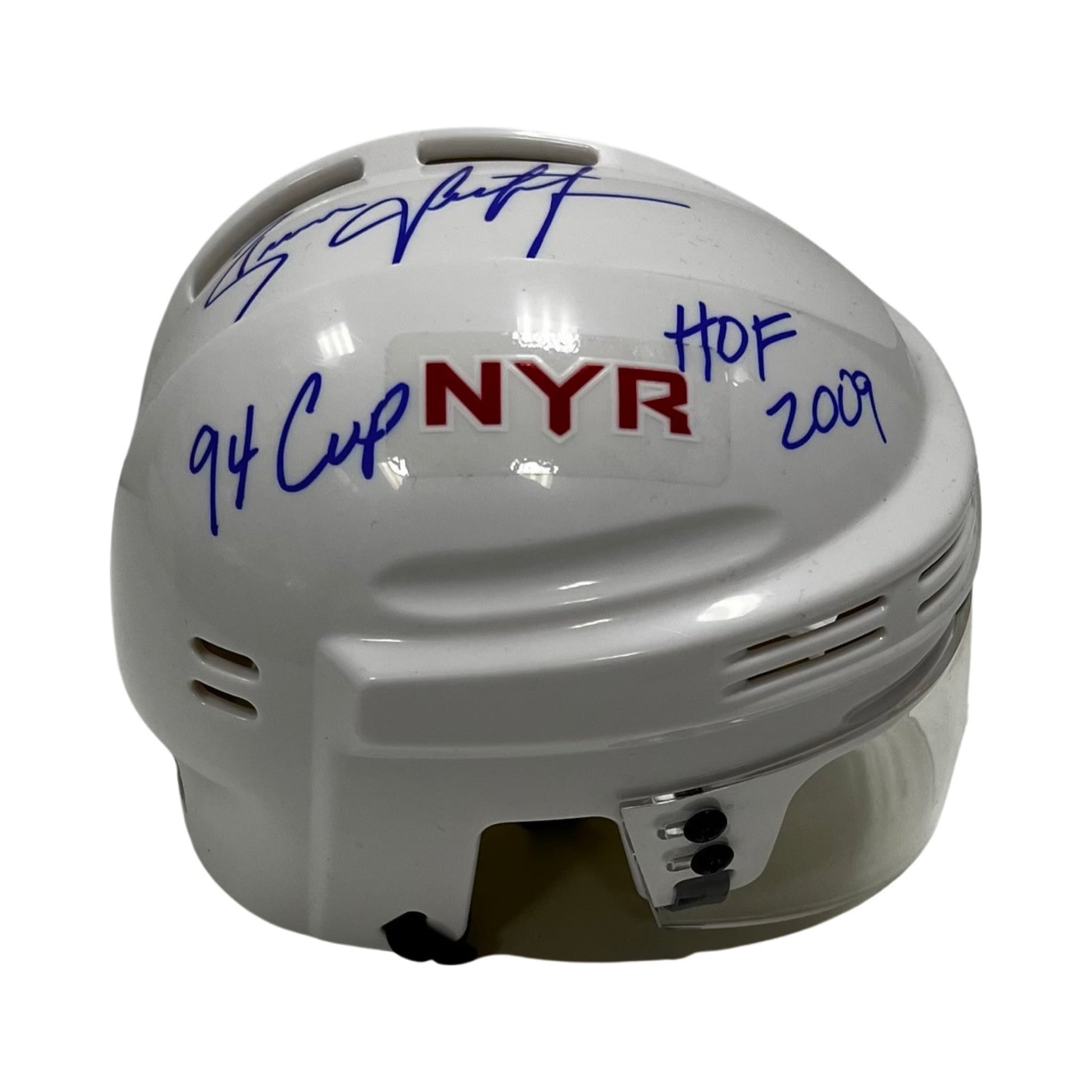 Brian Leetch Autographed New York Rangers White Mini Helmet 94 Cup, HOF 2009 Inscriptions Steiner CX