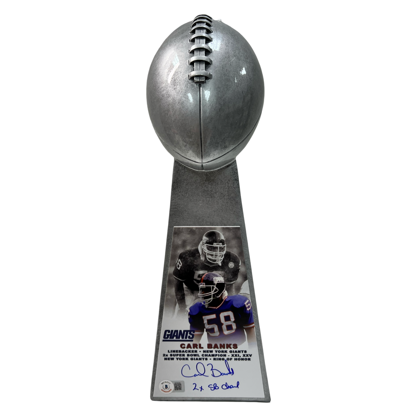 Carl Banks Autographed New York Giants Super Bowl Replica Trophy 2x SB Champ Inscription Beckett