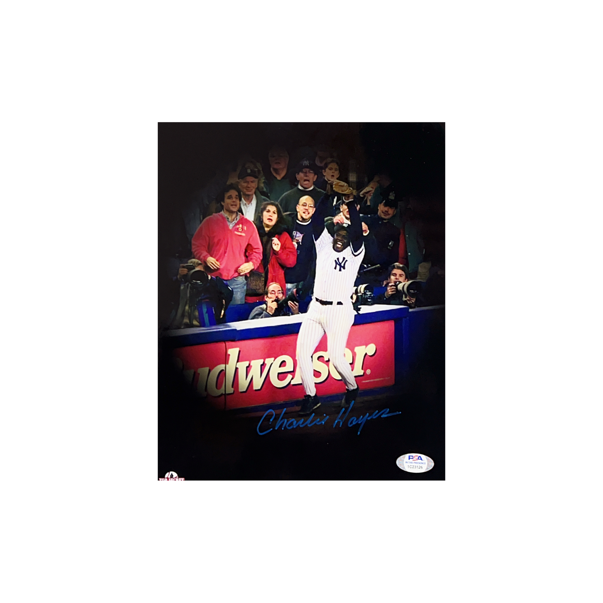 This is a 8x10 photo that has been hand signed by Charlie Hayes. This item has been certified authentic by Professional Sports Authenticator (PSA) and comes with their tamper-proof sticker that can be verified on https://www.psacard.com (https://www.psacard.com/).