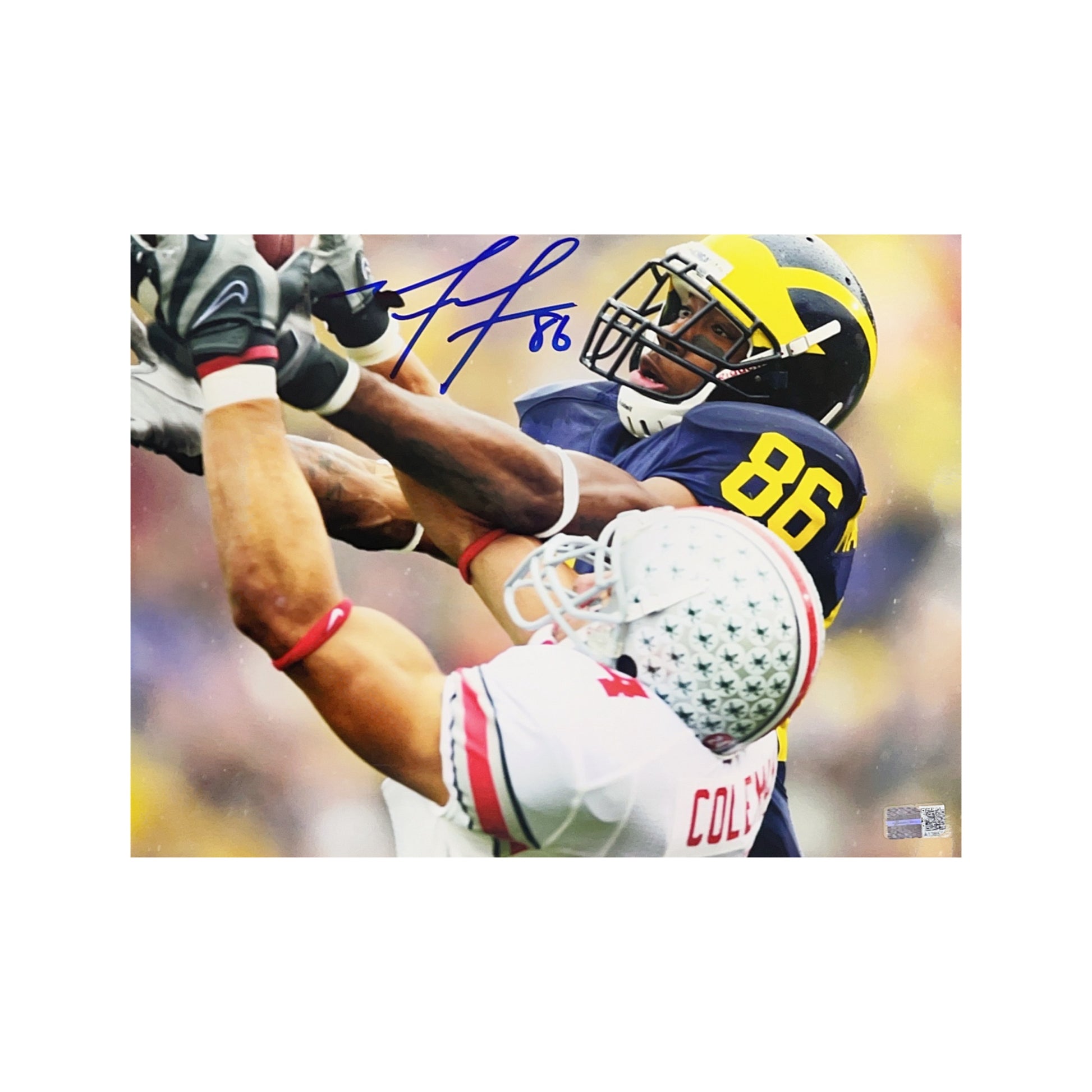 Mario Manningham Autographed Michigan Wolverines Catch Horizontal 8x10 Steiner CX