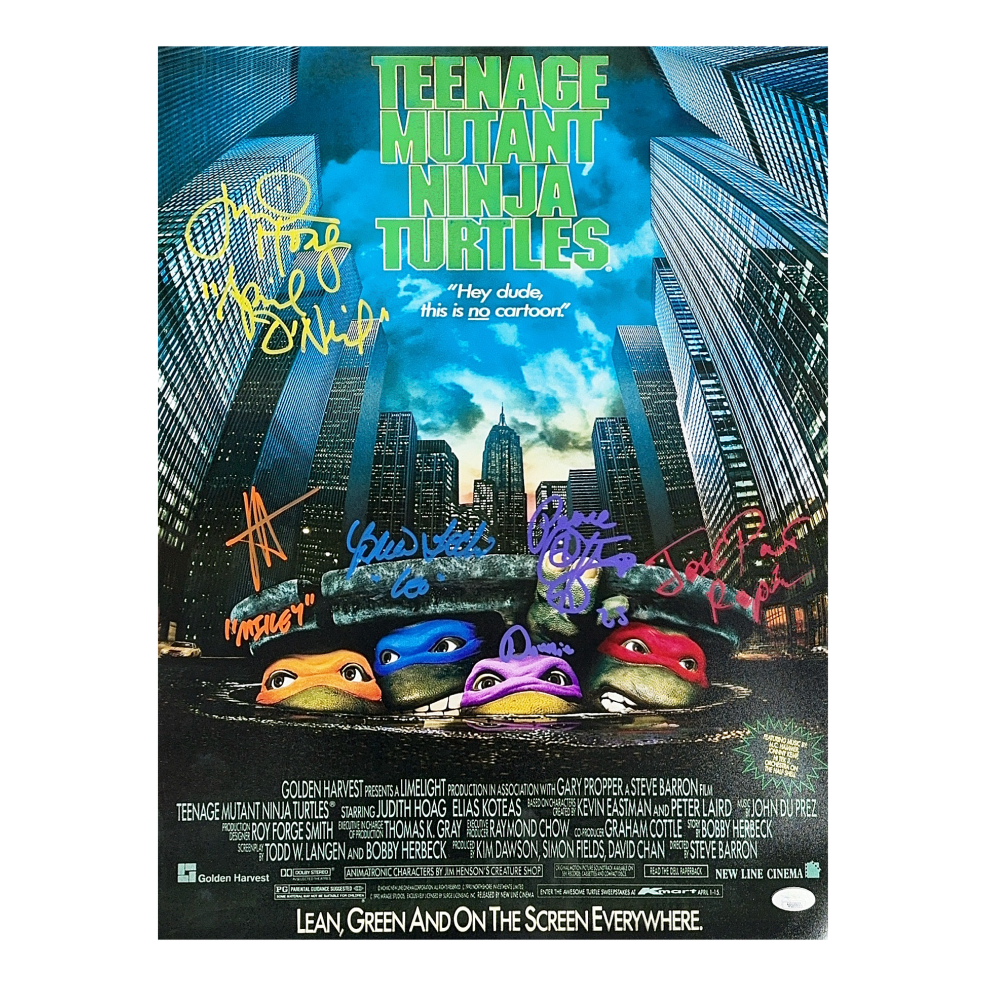 Corey Feldman, Robbie Rist, Brian Tochi, John Pais & Judith Hogg Autographed Teenage Mutant Ninja Turtles TMNT Movie Poster 16x20 April O’Neil, Mikey, Leo, Donnie, Ralph Inscriptions JSA