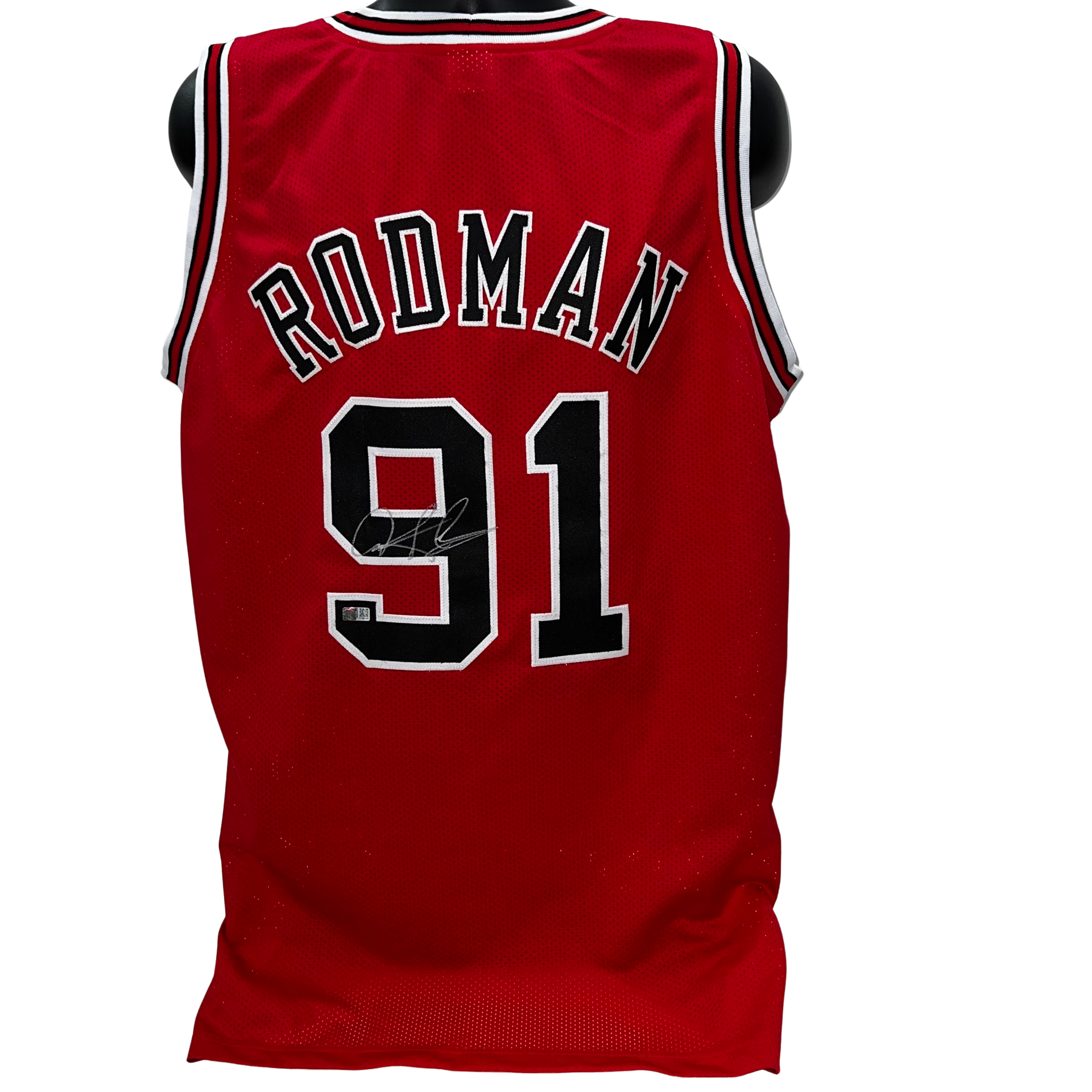 Dennis Rodman Autographed Chicago Bulls Red Jersey Steiner