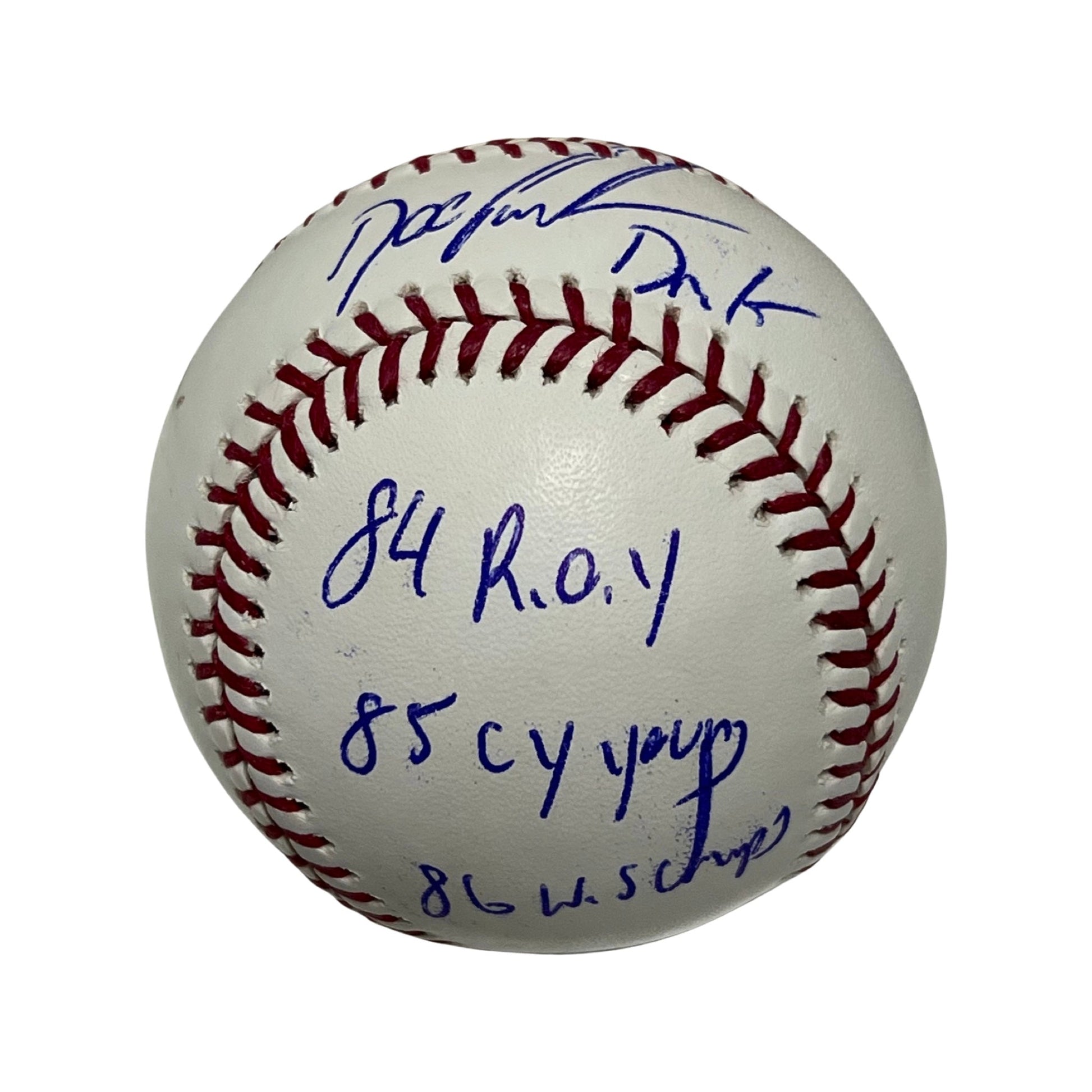 Doc Gooden Autographed New York Mets OMLB Dr K, 84 ROY, 85 Cy Young, 86 WS Champs Inscriptions JSA