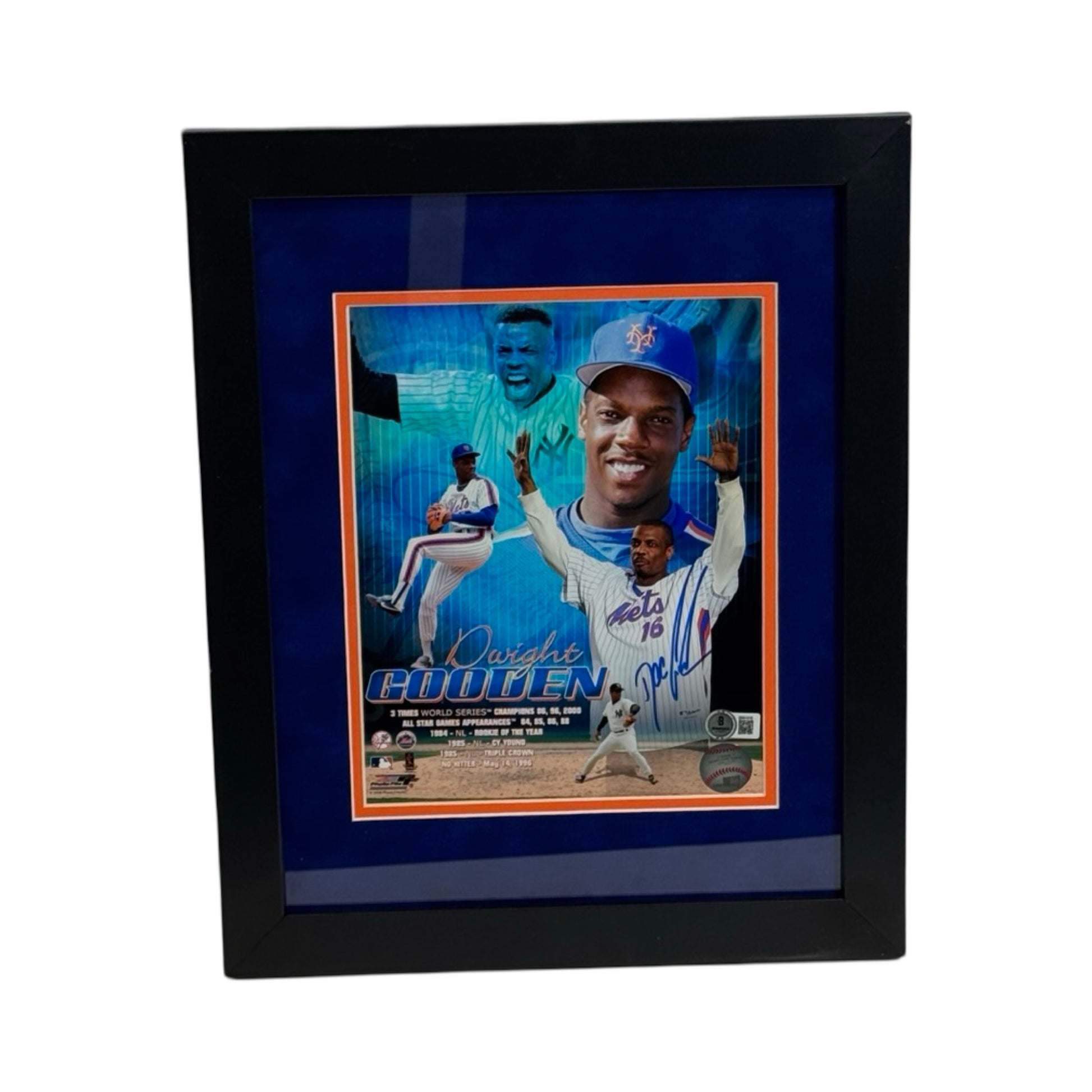 Doc Gooden Autographed New York Mets Stat Hands Up Framed 8x10 Beckett