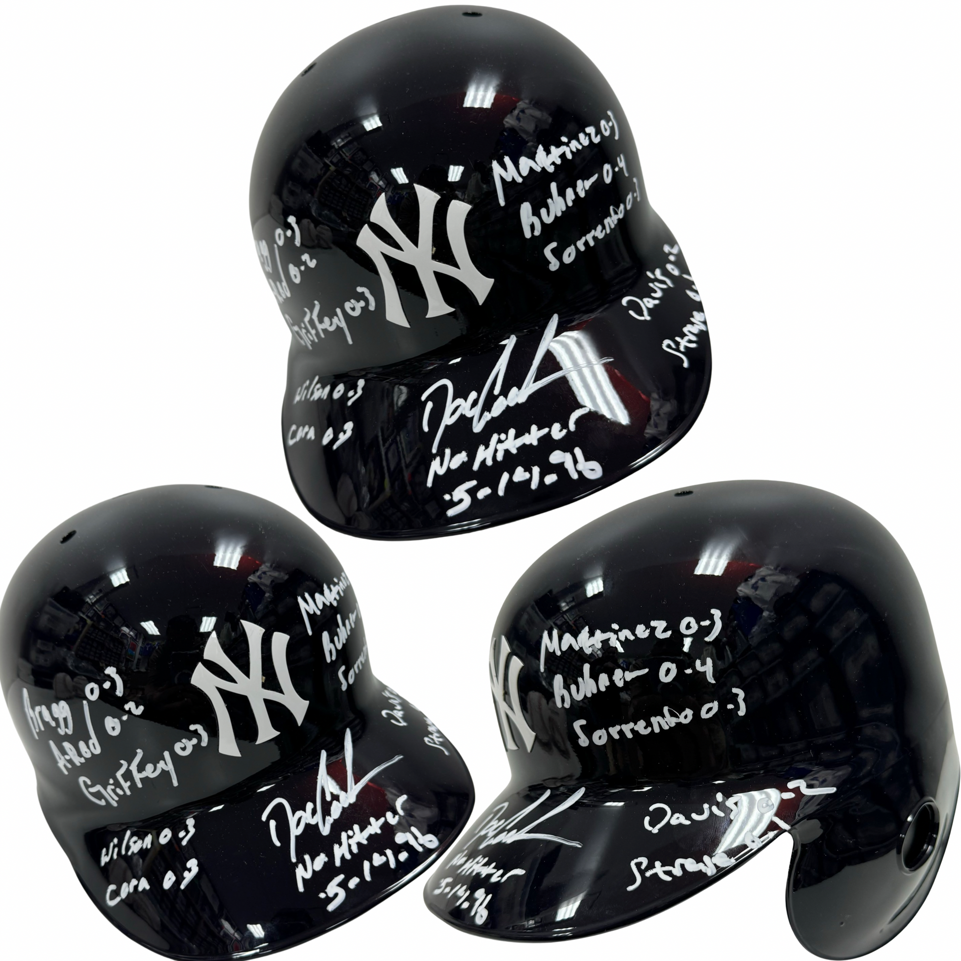 Doc Gooden Autographed New York Yankees Batting Helmet "No Hitter 5-14-96, Bragg 0-3, A-Rod 0-2, Griffey 0-3, Martinez 0-3, Buchner 0-4, Sorrento 0-3, Wilson 0-3, Cora 0-3, Davis 0-2, Strange 0-1" Inscriptions Steiner CX