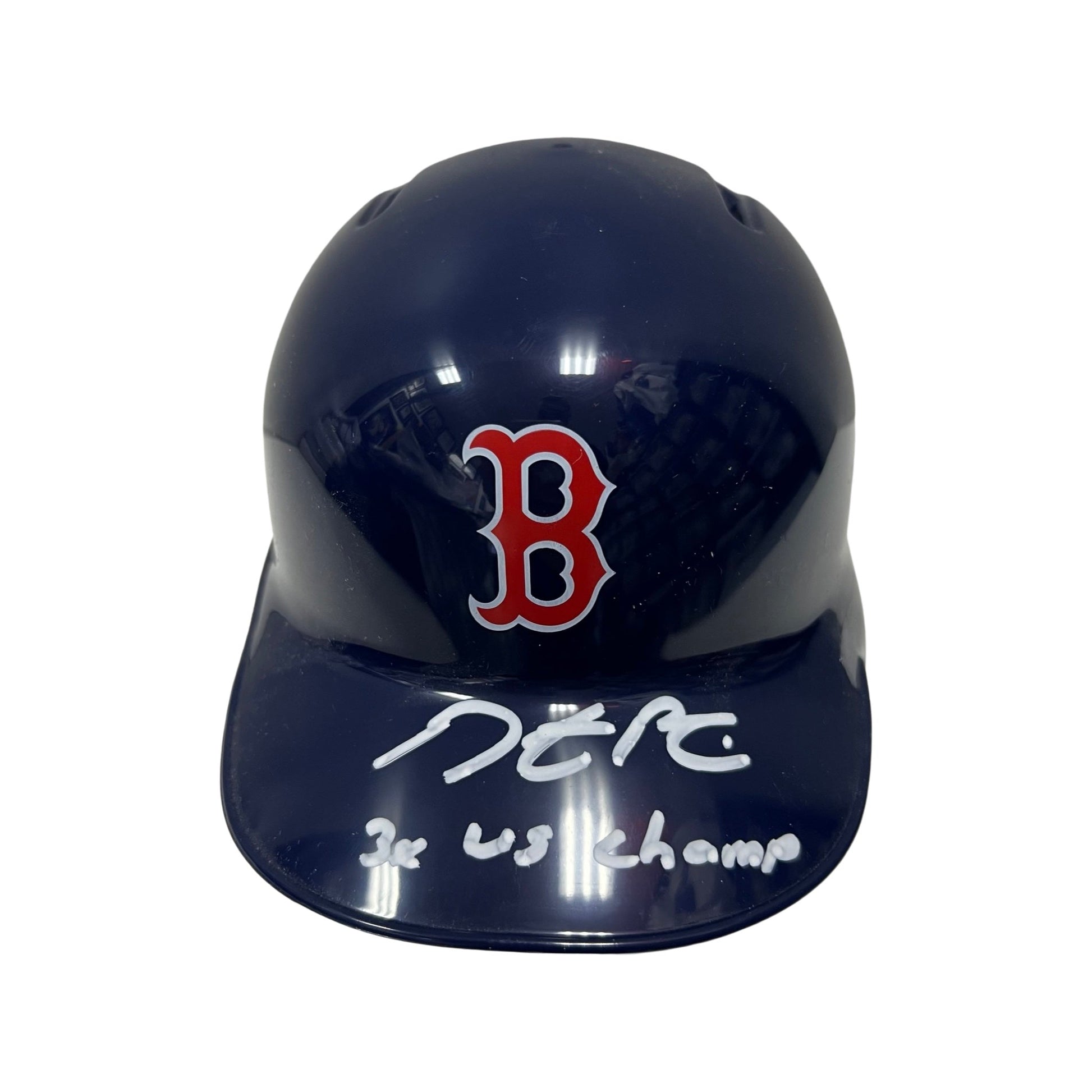 Dustin Pedroia Autographed Boston Red Sox Mini Helmet 3x WS Champ Inscription Steiner CX