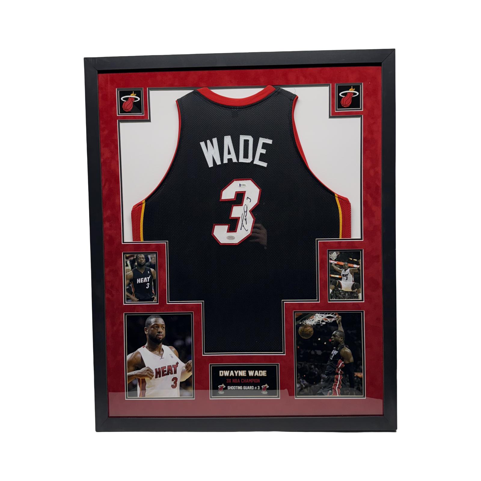Dwayne Wade Autographed Miami Heat Black Jersey Beckett - Framed
