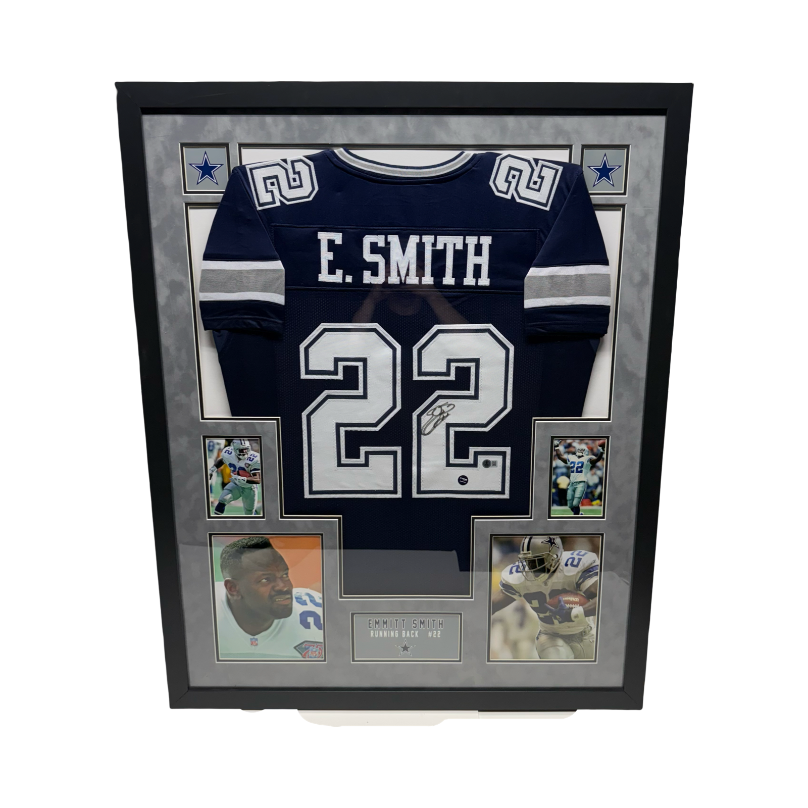 Emmitt Smith Autographed Dallas Cowboys Blue Jersey Beckett - Framed