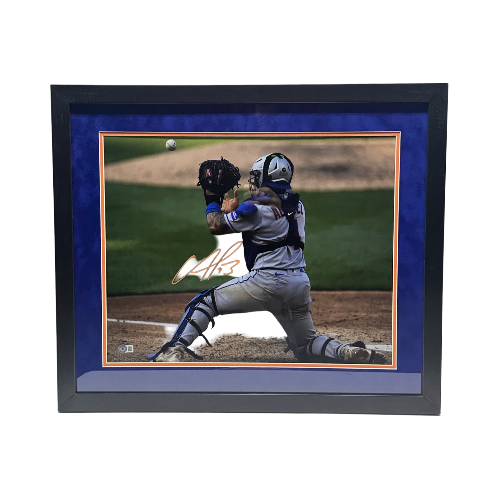 Fransisco Alvarez Autographed New York Mets Catching Horizontal 16x20 Beckett - Framed