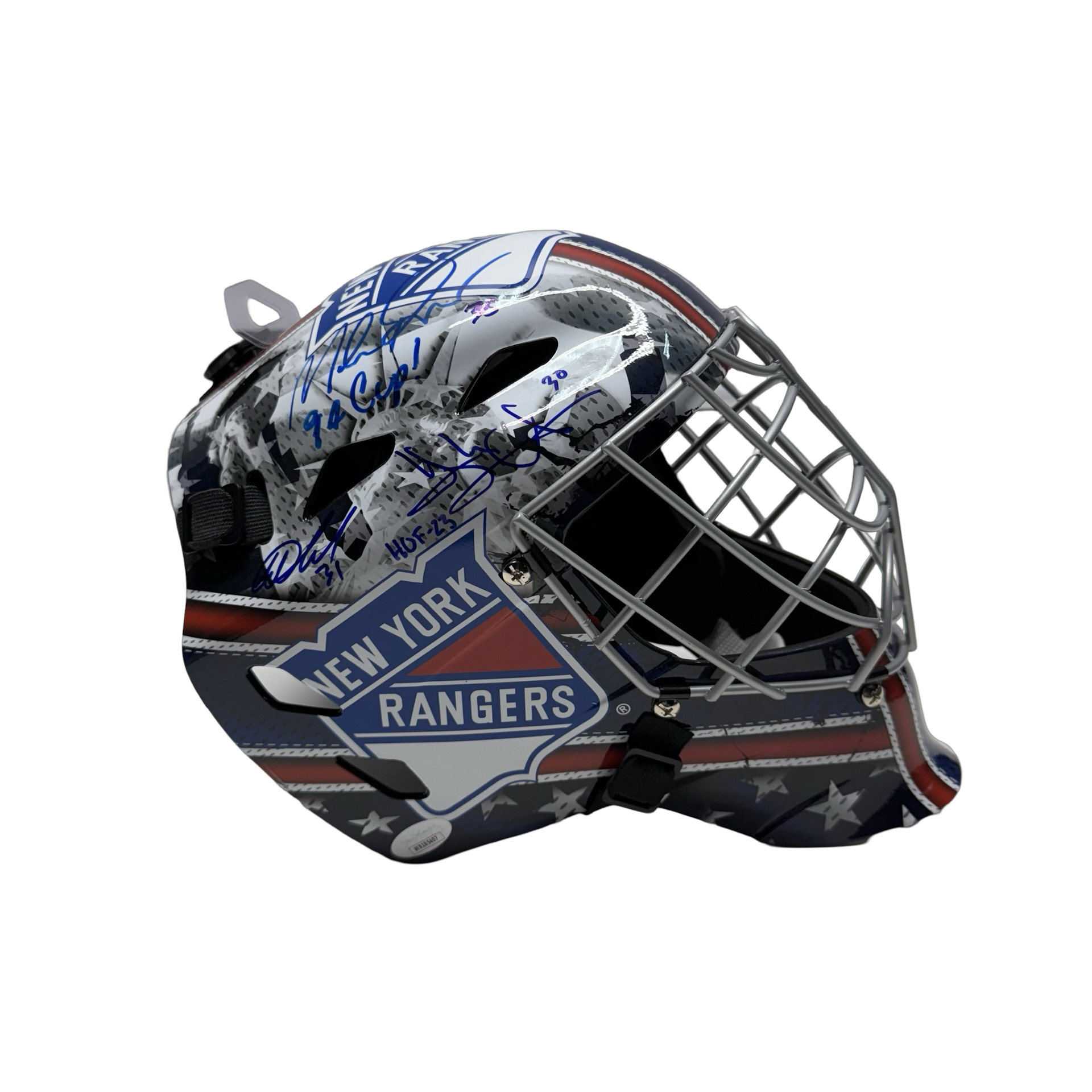 Igor Shesterkin, Henrik Lundqvist & Mike Richter Autographed New York Rangers Full Size Goalie Mask JSA