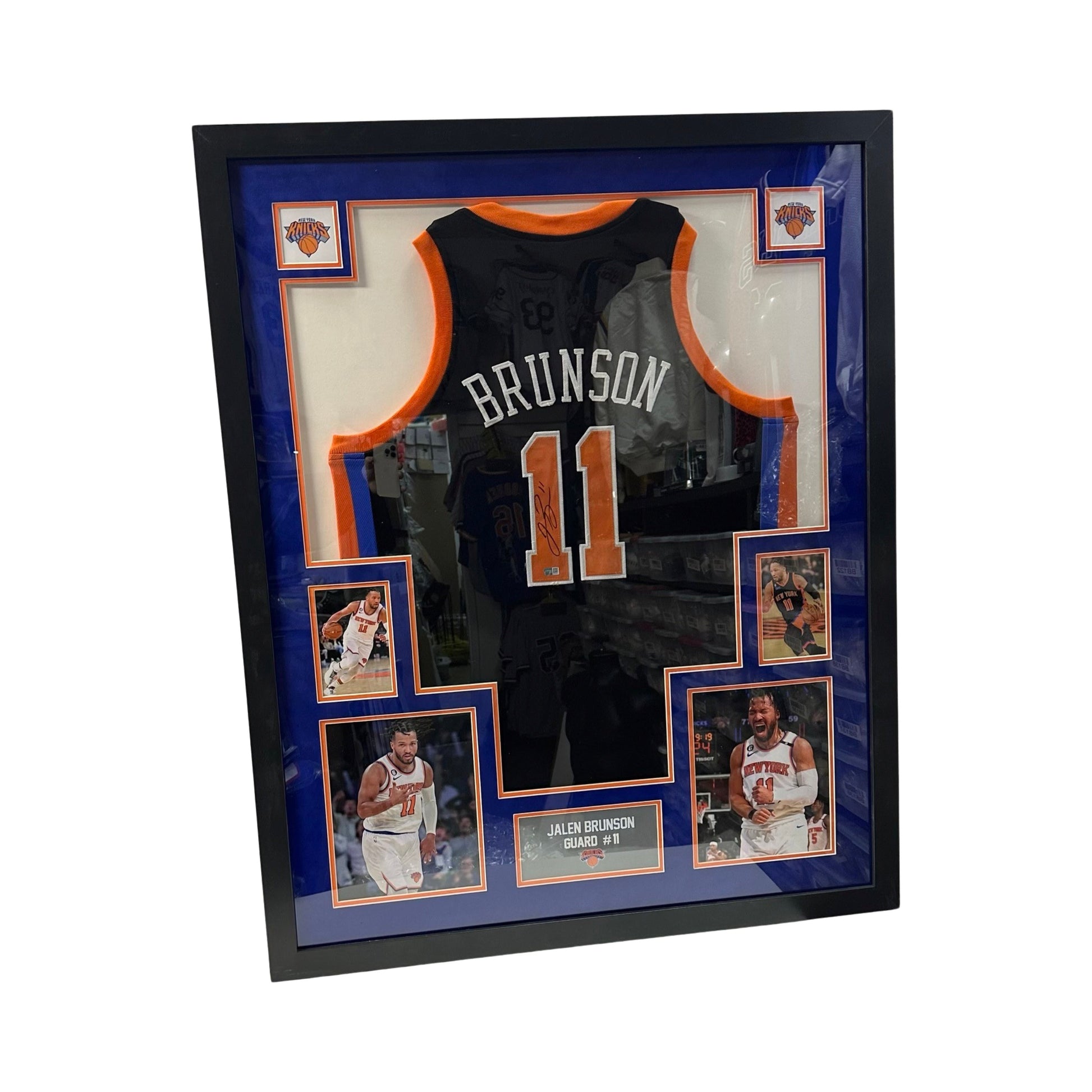 Jalen Brunson Autographed New York Knicks Framed Black Jersey White Back Steiner CX