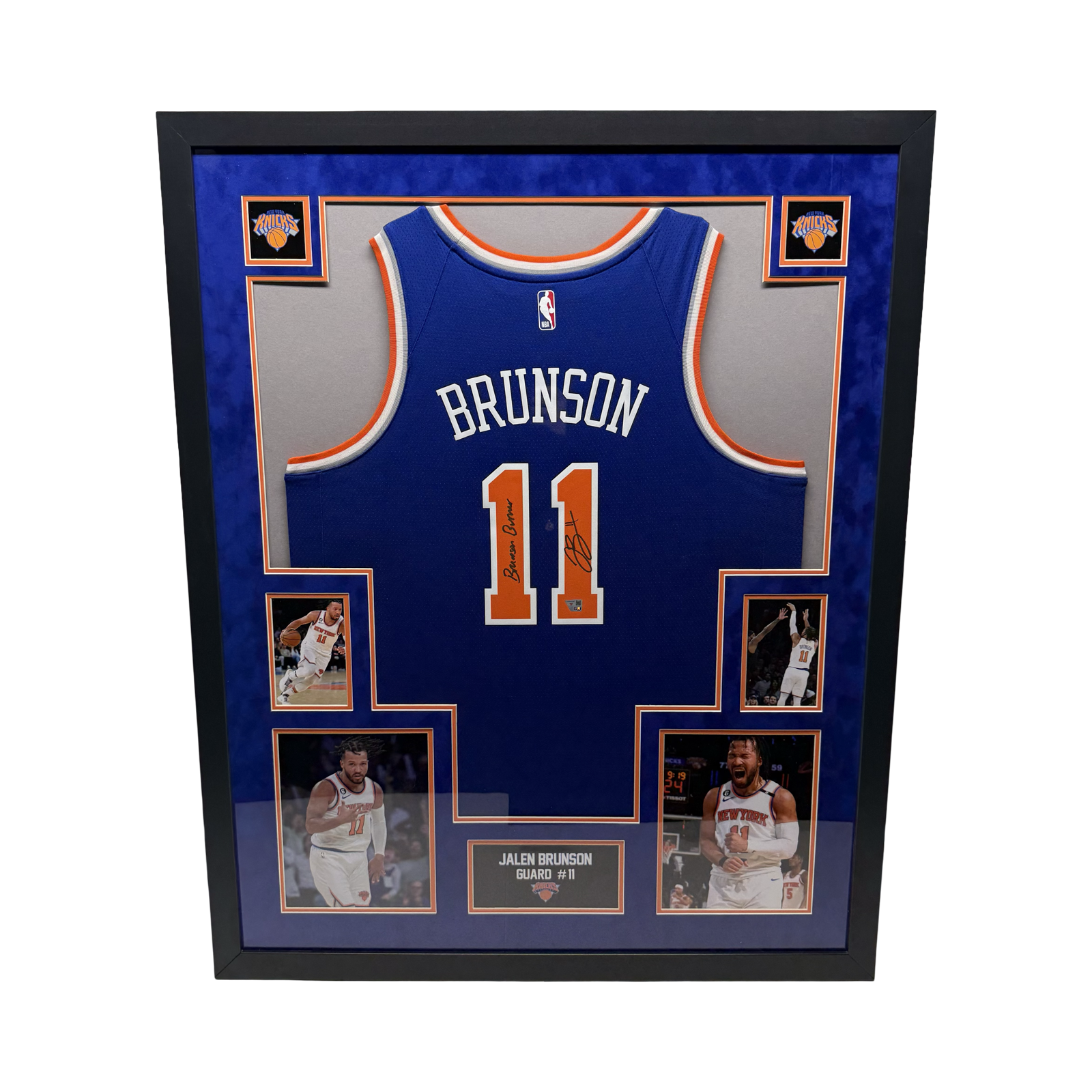 Jalen Brunson Autographed New York Knicks Framed Blue Jersey Brunson Burner Blue Mat Fanatics