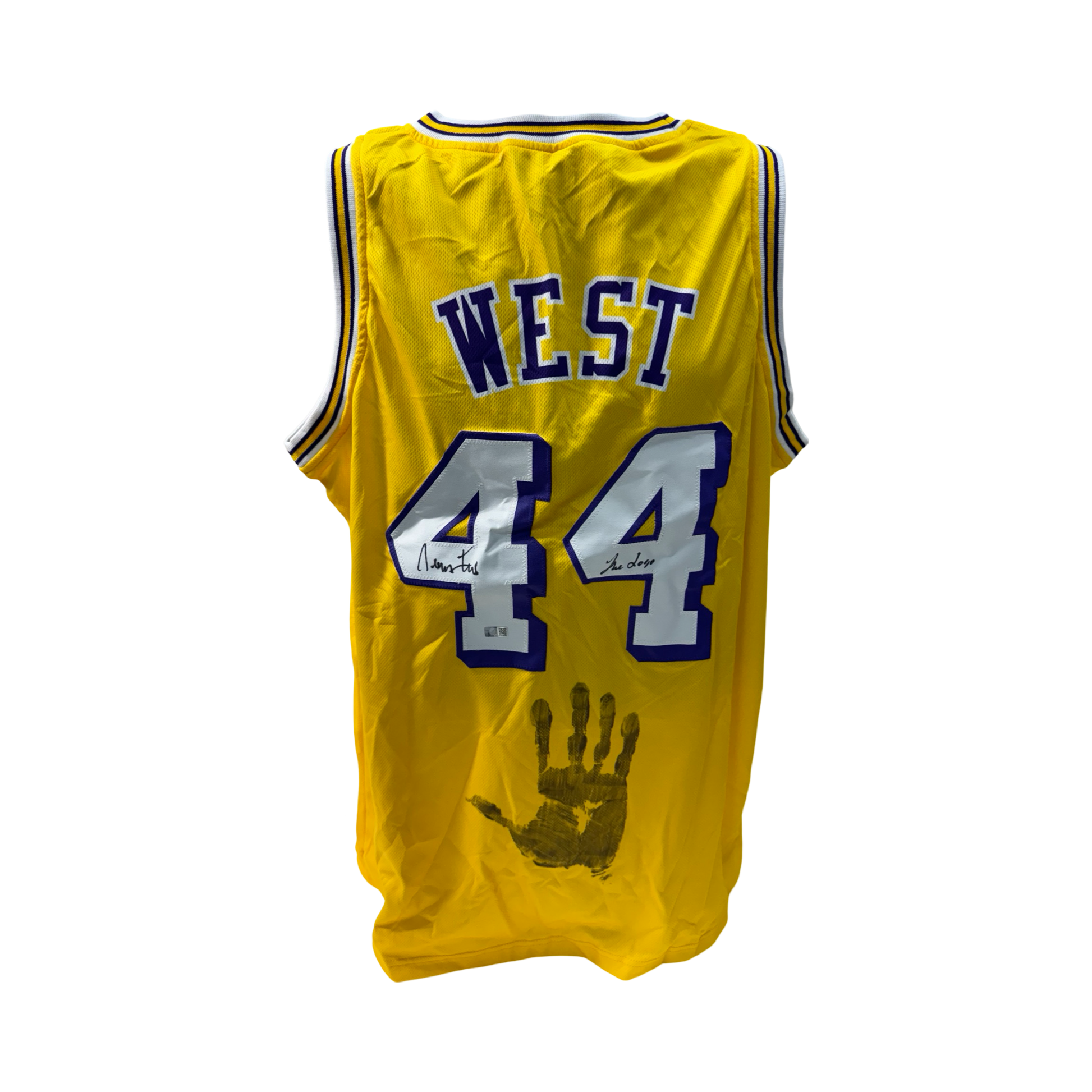 Jerry West Autographed Los Angeles Lakers Yellow Jersey w/ Handprint The Logo Inscription Steiner CX