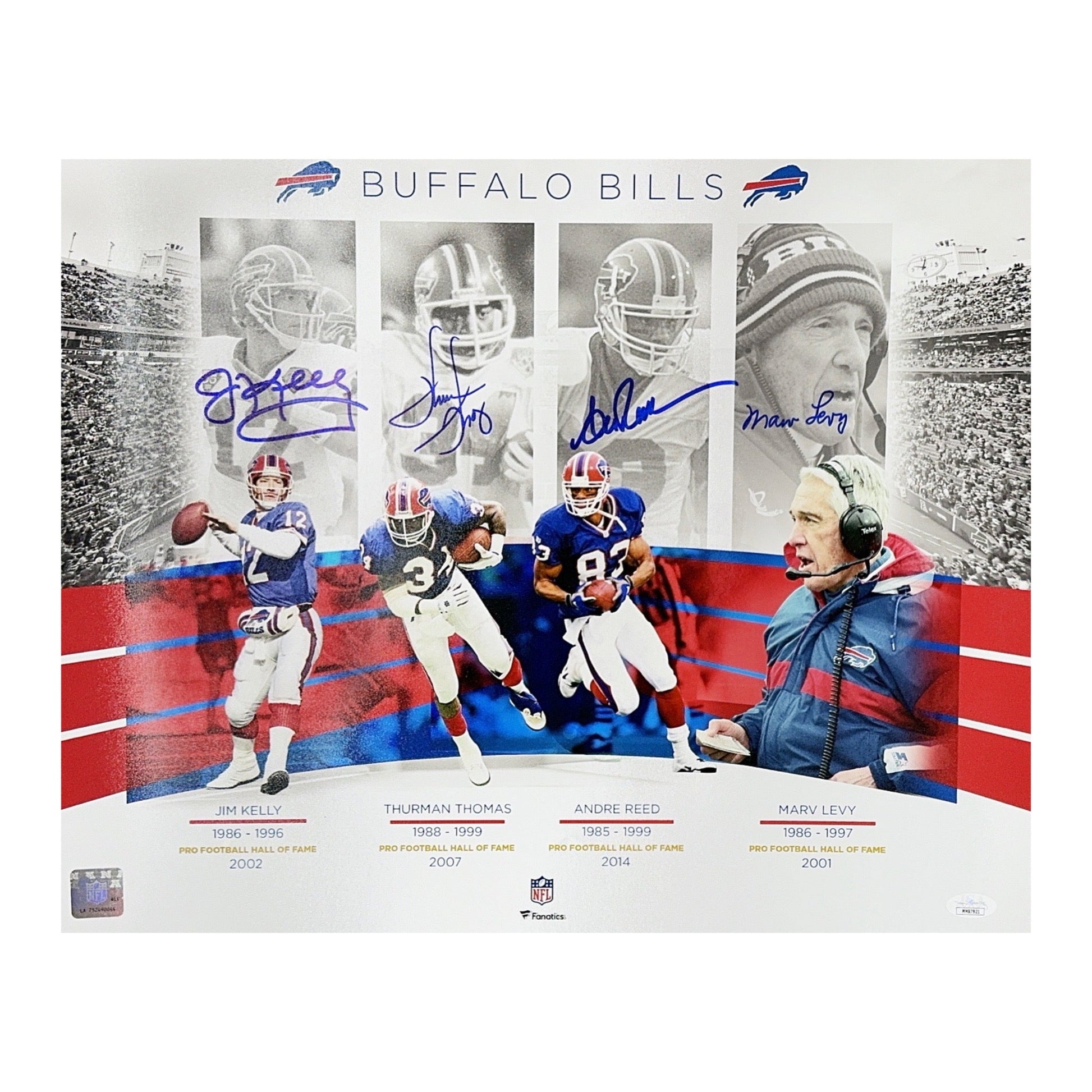 Jim Kelly, Thurman Thomas, Andre Reed & Marv Levy Autographed Buffalo Bills K-Gun Offense 16x20 JSA - Framed