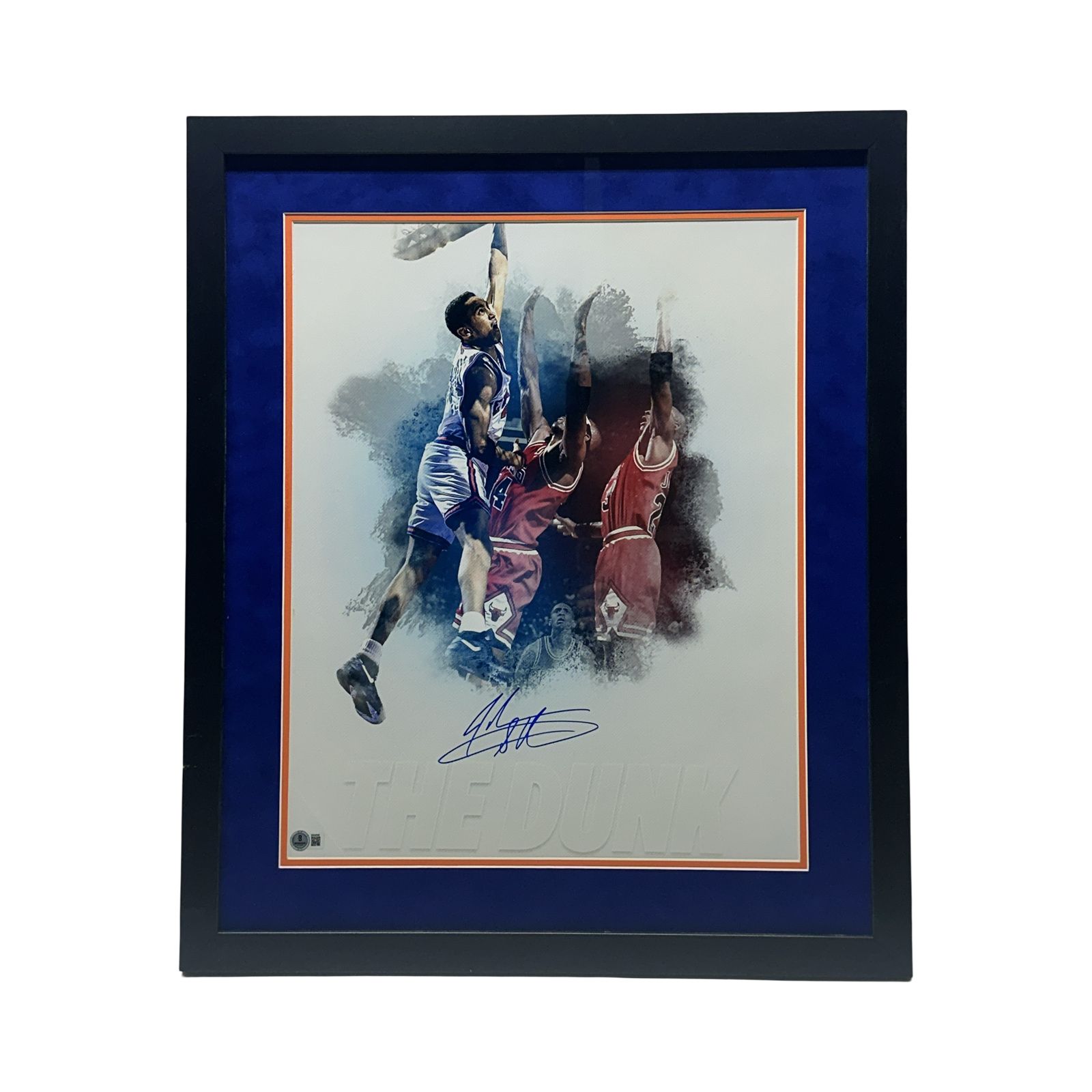 John Starks Autographed New York Knicks The Dunk White Edit 16x20 Beckett BAS - Framed