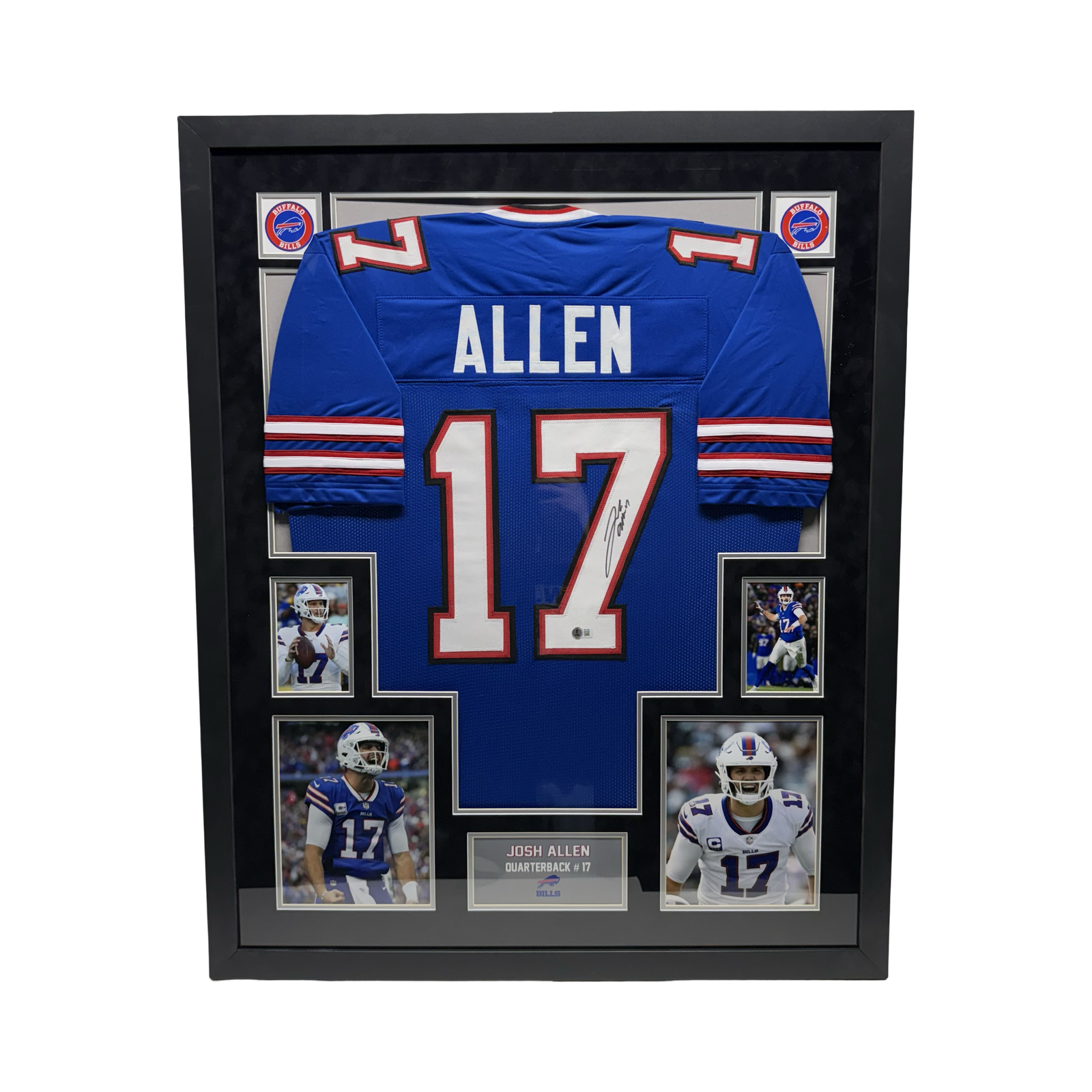 Josh Allen Autographed Buffalo Bills Blue Jersey Beckett - Black/Grey Suede Framed