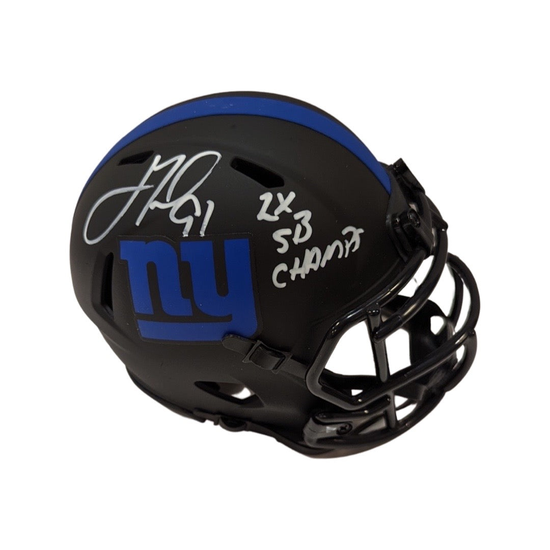 Justin Tuck Autographed New York Giants Eclipse Mini Helmet 2x SB Champs Inscription JSA