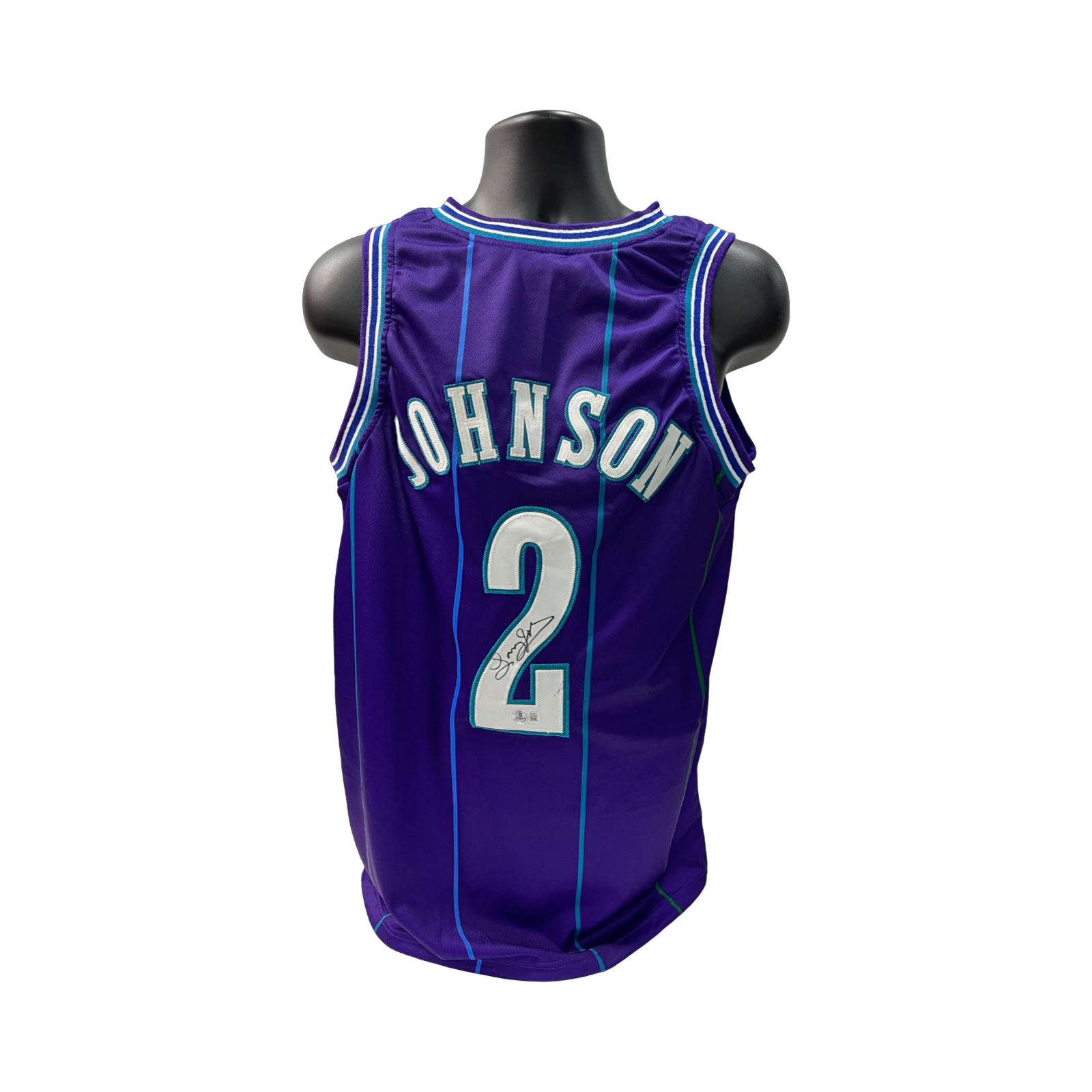 Larry Johnson Autographed Charlotte Hornets Purple Jersey Beckett
