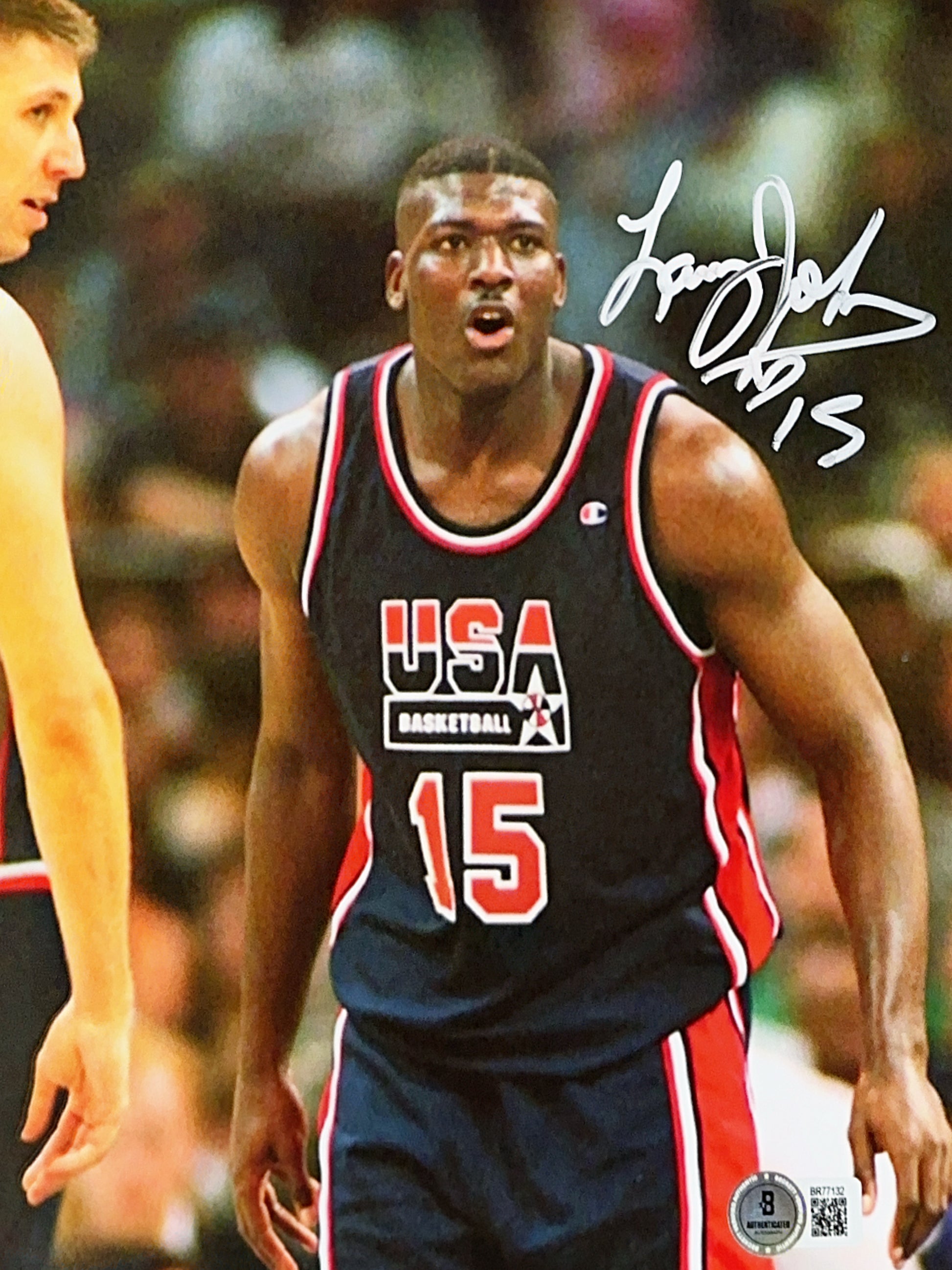 Larry Johnson Autographed Team USA Stare 8x10 Beckett