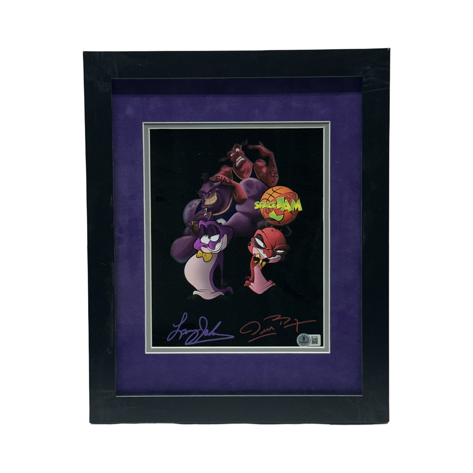 Larry Johnson & Muggsy Bogues Autographed Space Jam Characters 8x10 Beckett - Framed