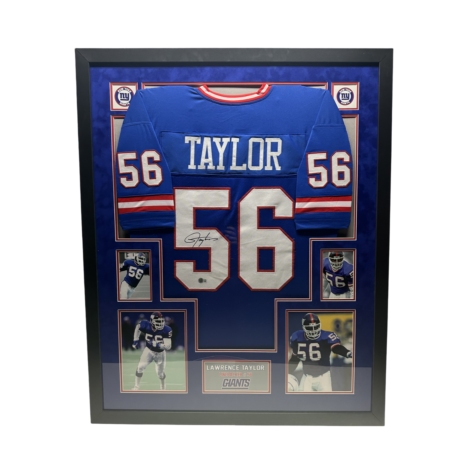 Lawrence Taylor Autographed New York Giants Blue Jersey Beckett - Framed