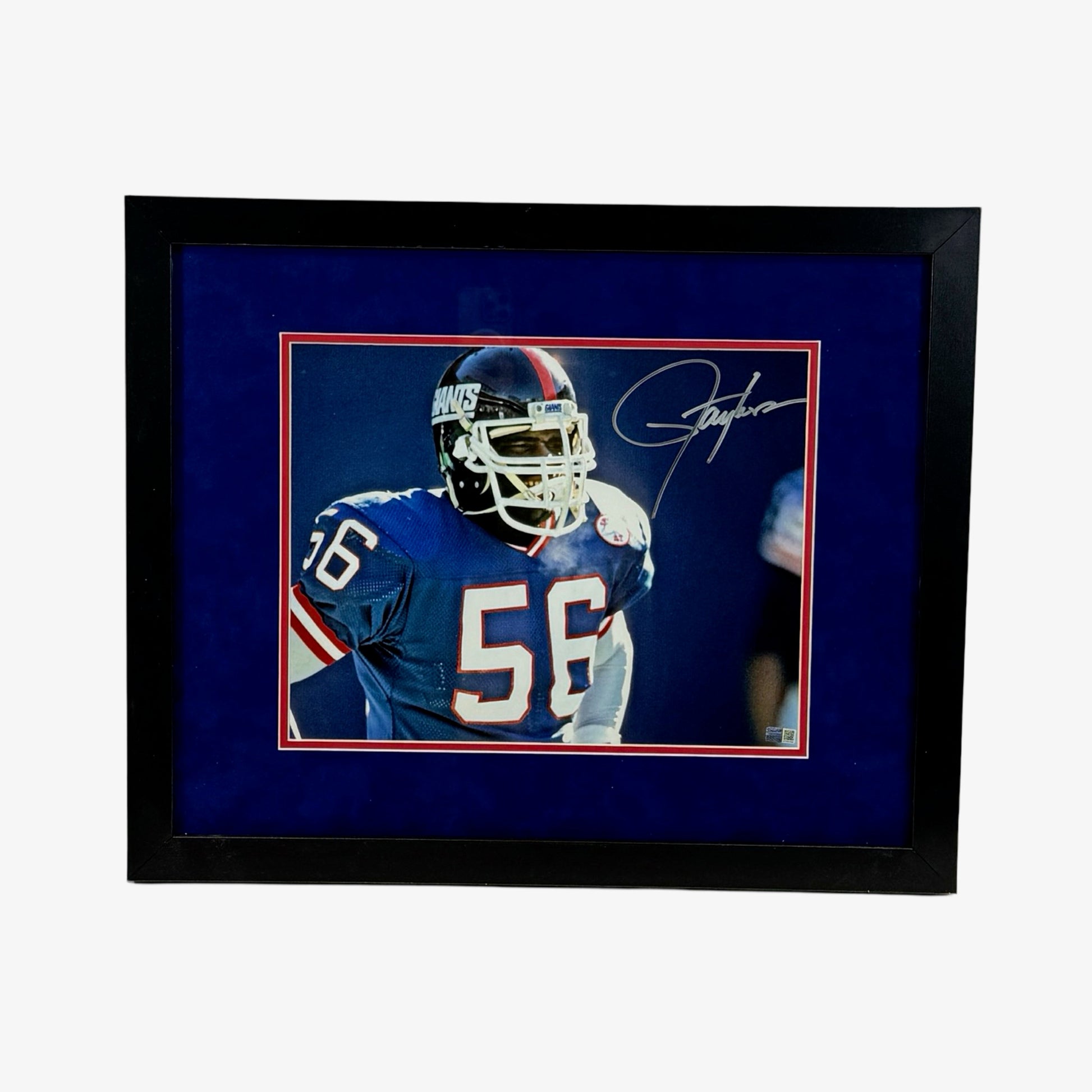 Lawrence Taylor Autographed New York Giants Close Up Blue Jersey Framed 11x14 Steiner CX